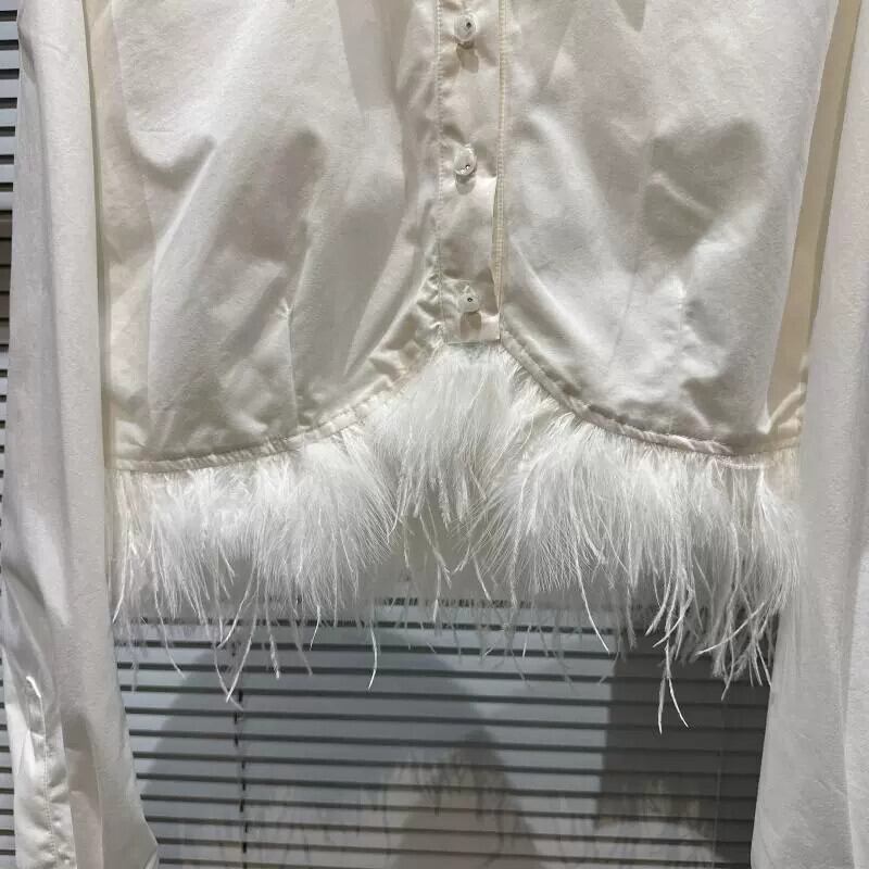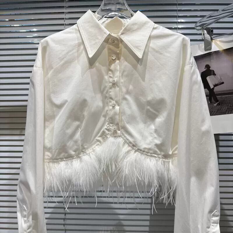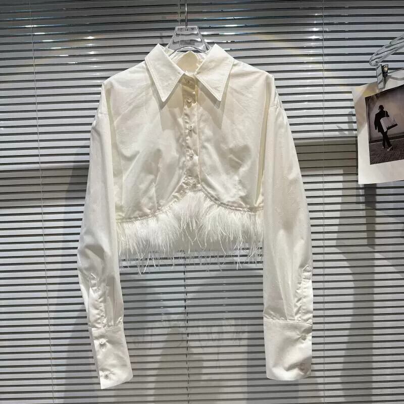 ネット有名人の同じ2024春の新スタイルの小さな香りの良い裾毛皮のような気質の無地のショートシャツシャツ スプリング 春物 ソリッドカラー gyan3395907598025 | vestitialla