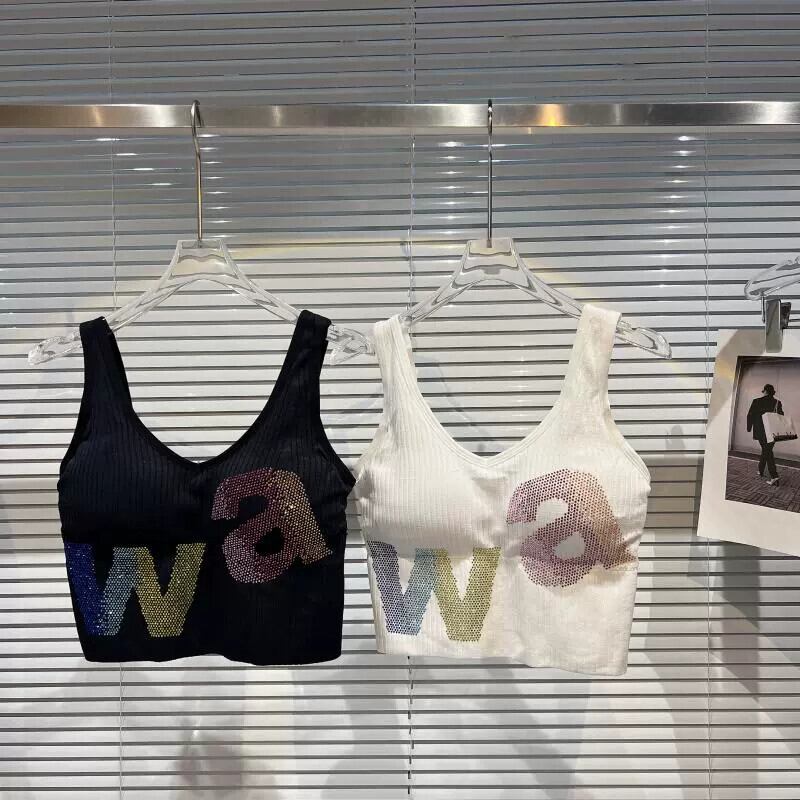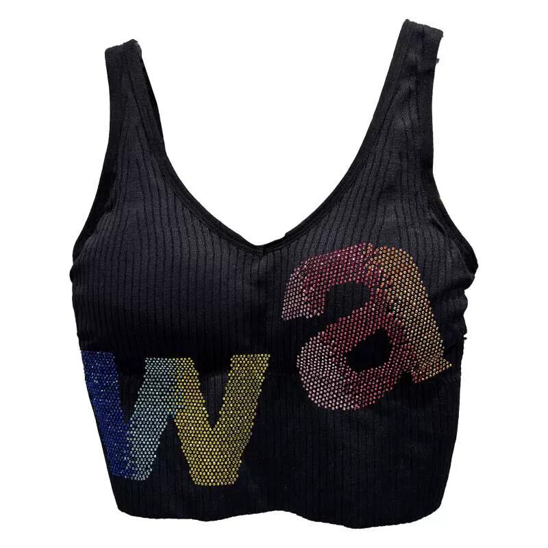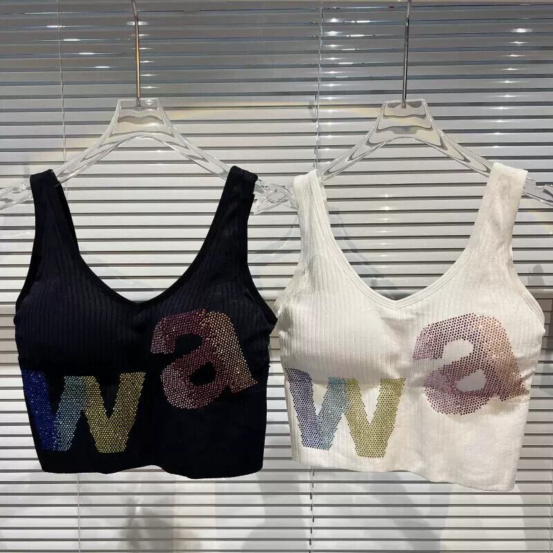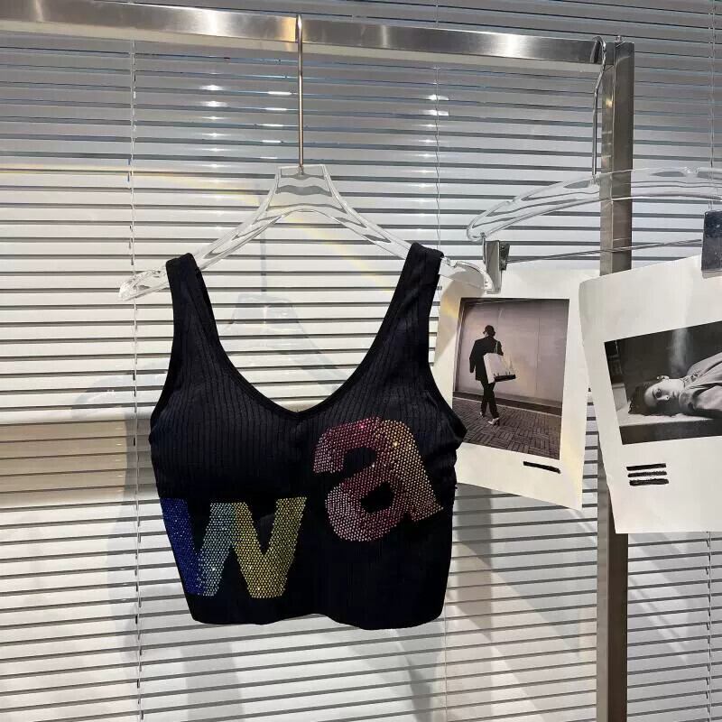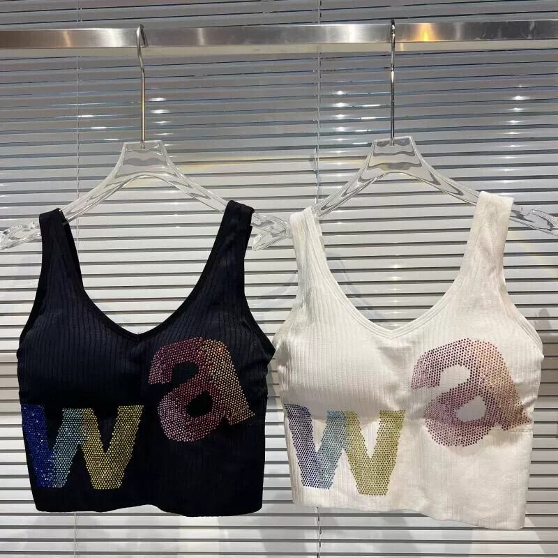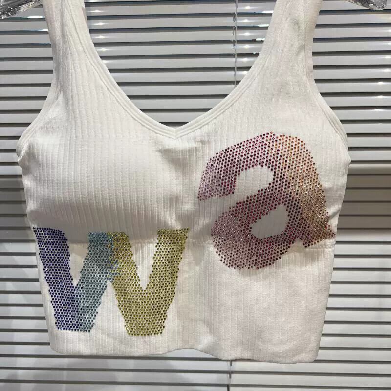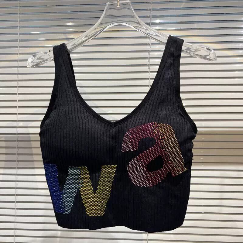 ネットセレブ同風 2024 春新作 スモールフレグランスグラデーションラインストーンカラー文字糸胸パッドショートキャミソール スプリング 春物 gyan3358276633646 | vestitialla