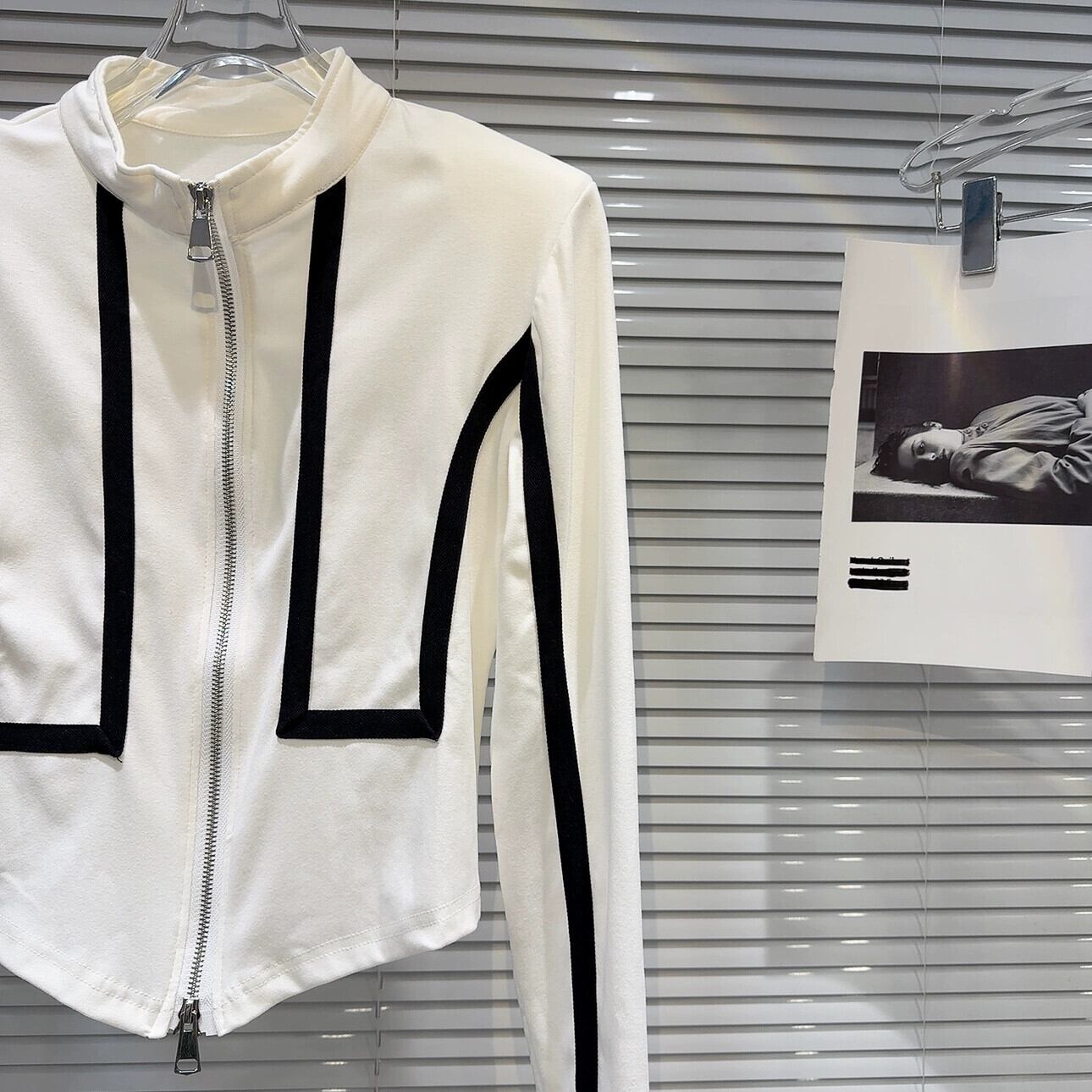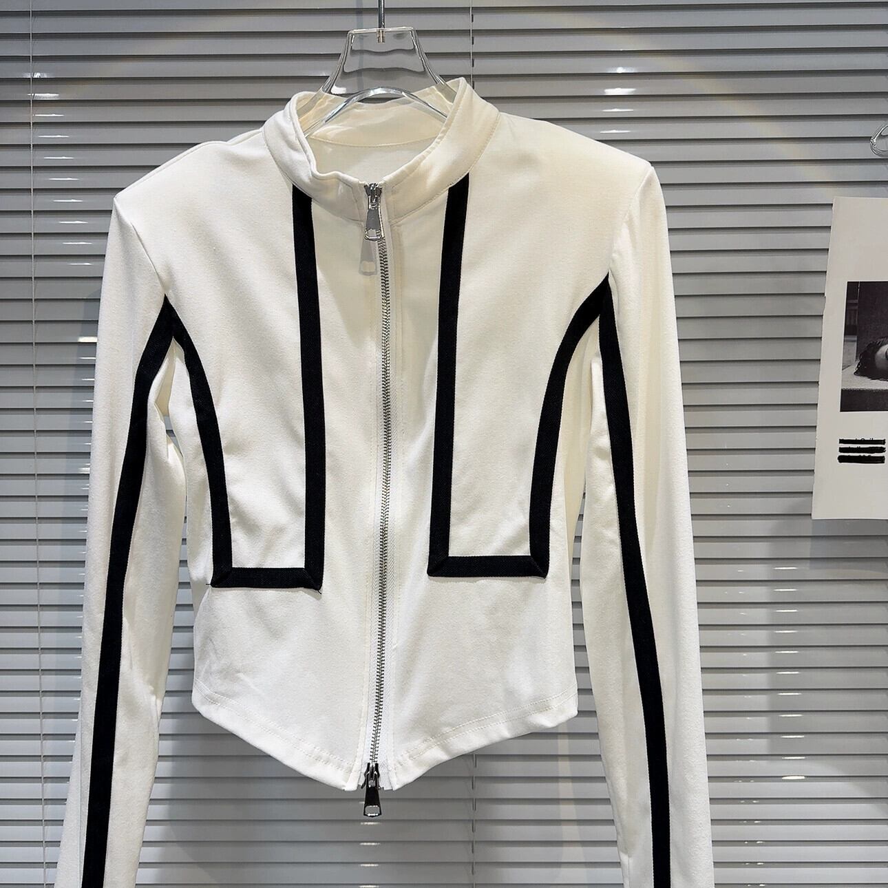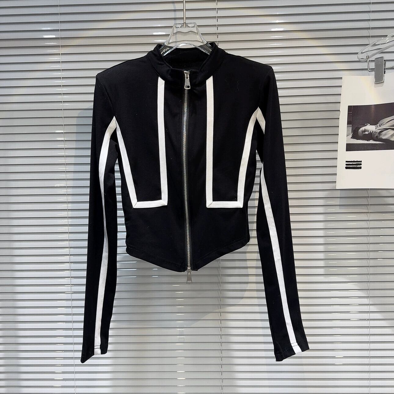 ネットセレブ同スタイル2024春新作ストライプ装飾エッジ肩パッド長袖スタンドカラージッパーカーディガンTシャツ ロング スプリング 春物 gyan3377628069066 | vestitialla