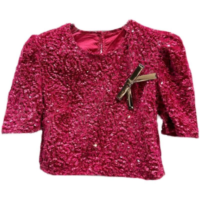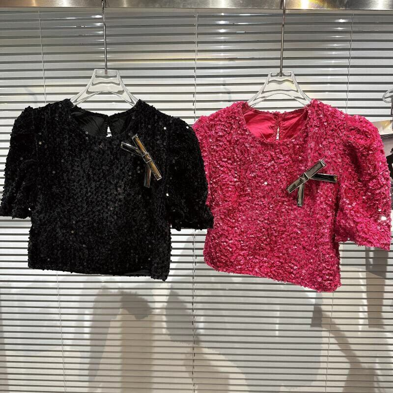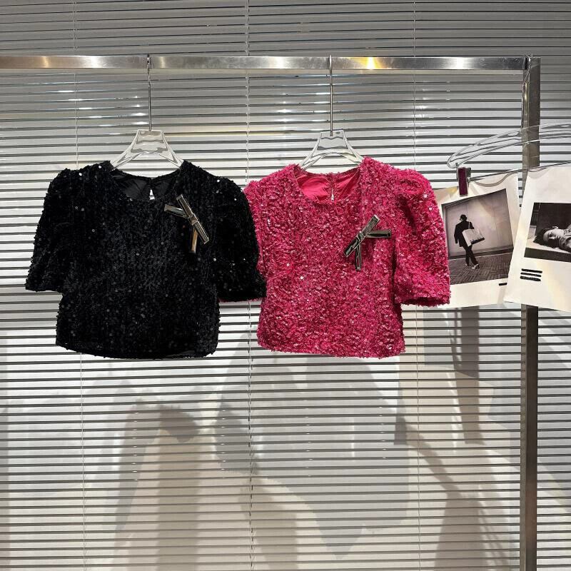 インターネットセレブの同じスタイル2024春の新しいセレブピンスパンコールがいっぱい光沢のあるショートパフスリーブTシャツ半袖 ハーフスリーブ スプリング 春物 gyan333324684187 | vestitialla