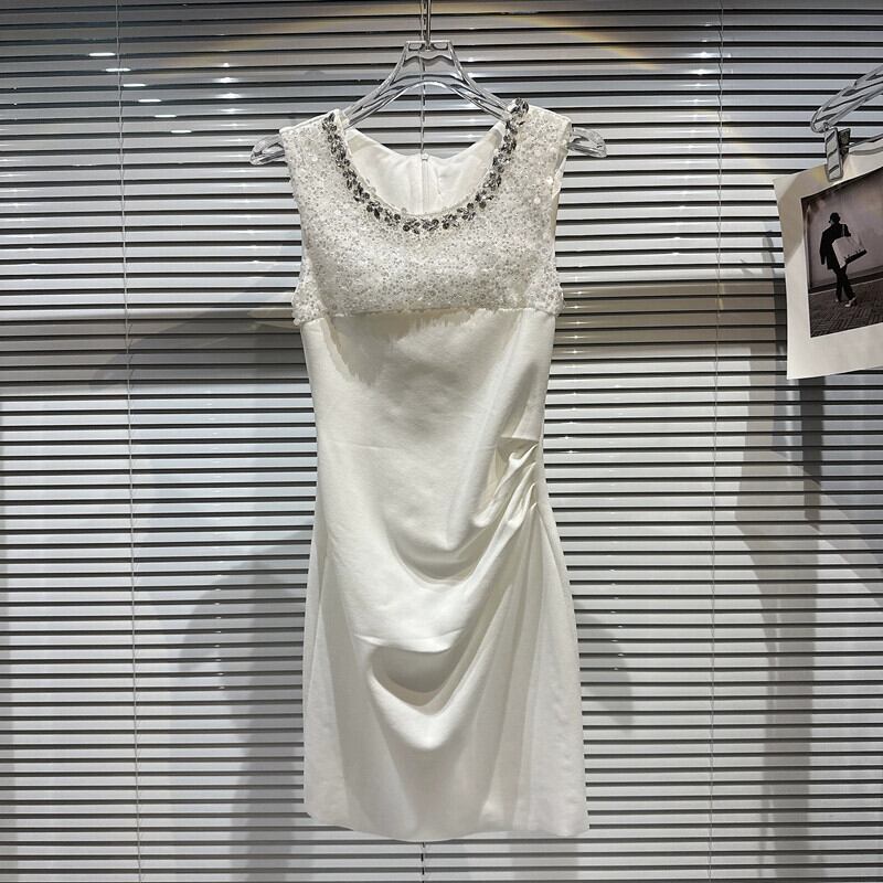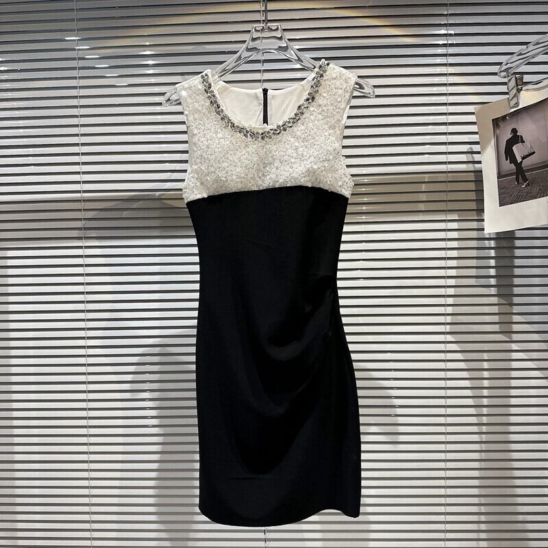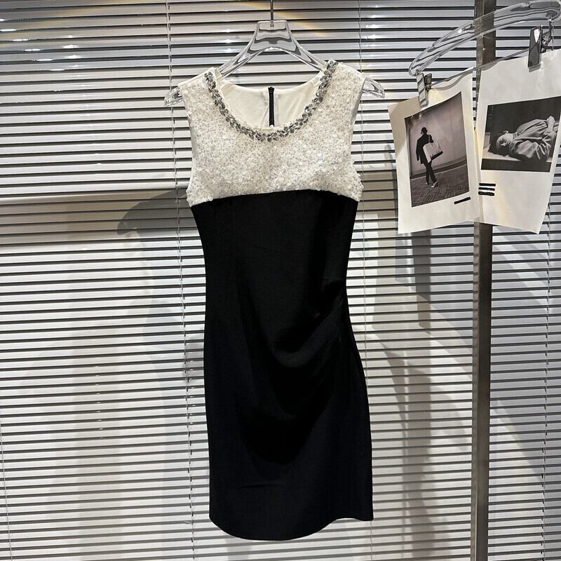 インターネット有名人の同じ2024夏の新しいスタイルの小さな香りのよいラインストーンビーズの襟スパンコールパッチワークウエストスリムドレス サマー 夏物 gyan3352369637364 | vestitialla