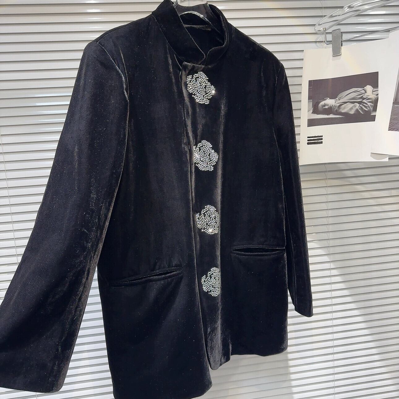ネット有名人の2024春の新スタイルの新中国風ダイヤモンドフラワー装飾高級ベルベットスタンドカラースーツジャケット スプリング 春物 フラワーデザイン gyan3369745193904 | vestitialla