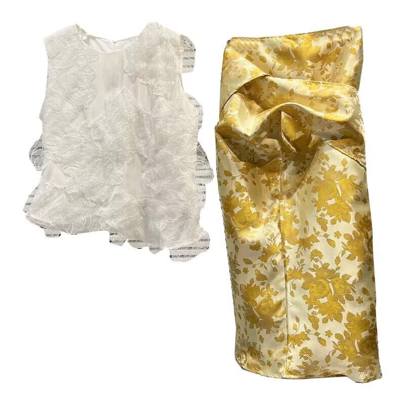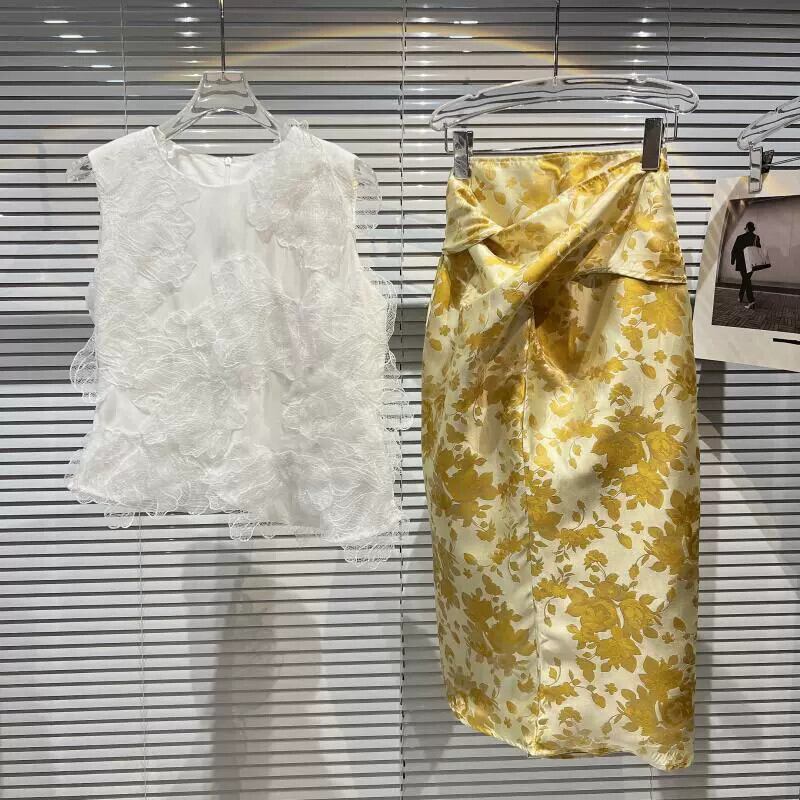 インターネット有名人の同じスタイル2024春の新しいスタイルの小さな香りのレースフックフラワーベスト+レトロなパターンのロングスカートスーツ スプリング 春物 フラワーデザイン gyan3399821956516 | vestitialla
