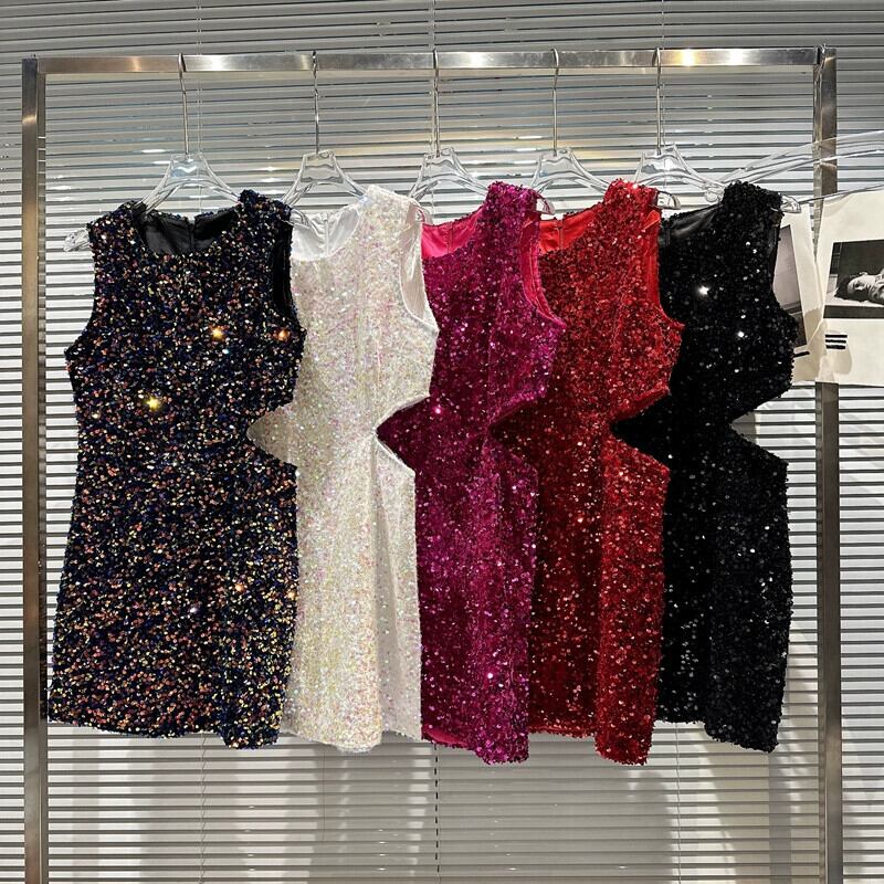 インターネットセレブと同じスタイル 2024 春の新作ナイトクラブセレブ全身スパンコールウエスト露出スリムセクシースリムヒップラップドレス スプリング 春物 gyan3348679398591 | vestitialla