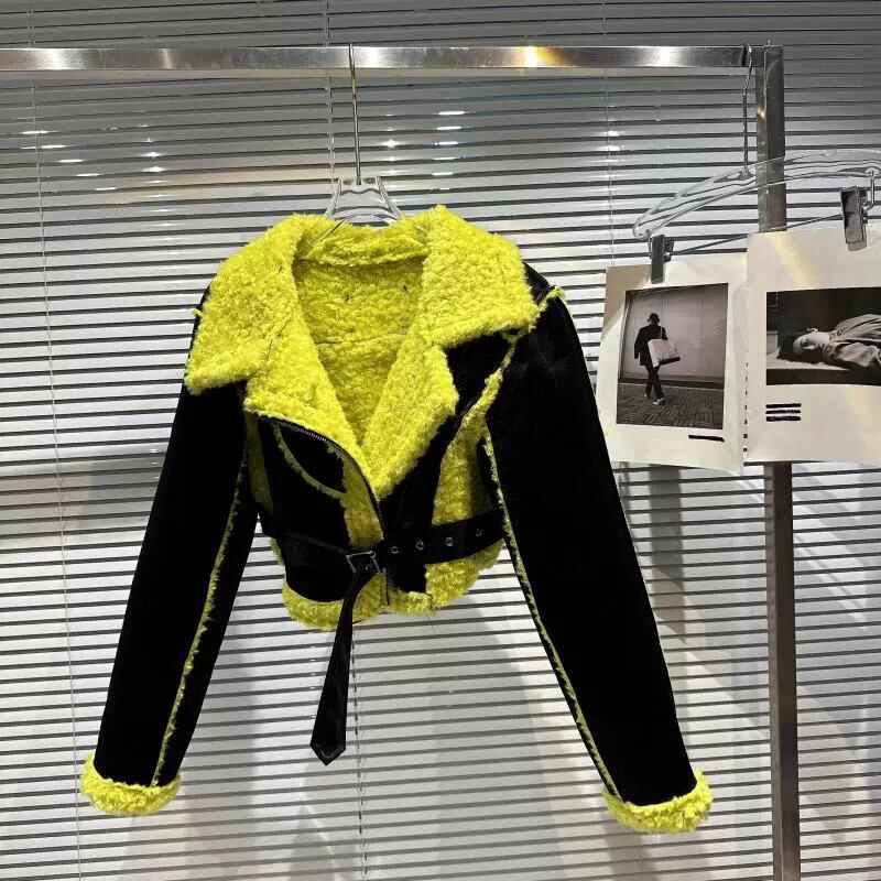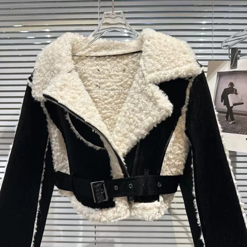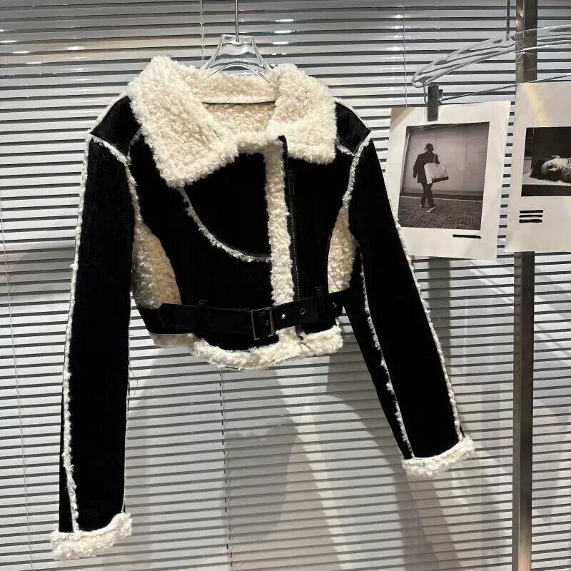 ネット有名人同スタイル2024新作冬スタイルストリートスタイルローエッジベルトスエードファー一体型レザージャケットトレンディ スウェード ウィンター 冬物 ハーネス gyan3382847321730 | vestitialla