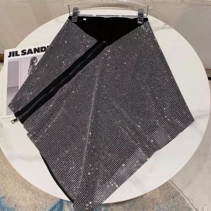 インターネット有名人の同じスタイル 2024 春の新フルラインストーンダイヤモンド斜めジッパーデザインナイトクラブの女神光沢のあるスカートスカート スプリング 春物 gyan3331775593867 | vestitialla