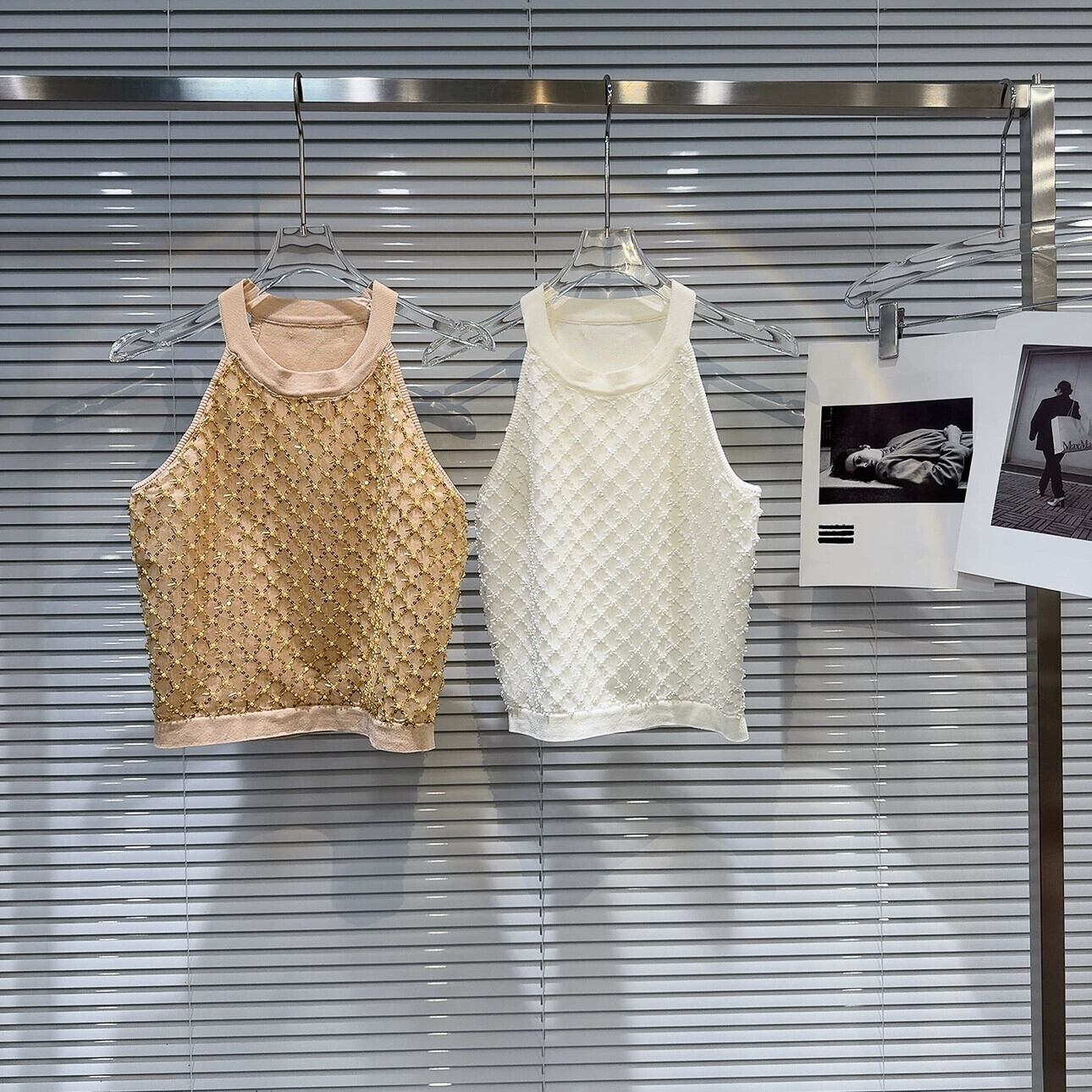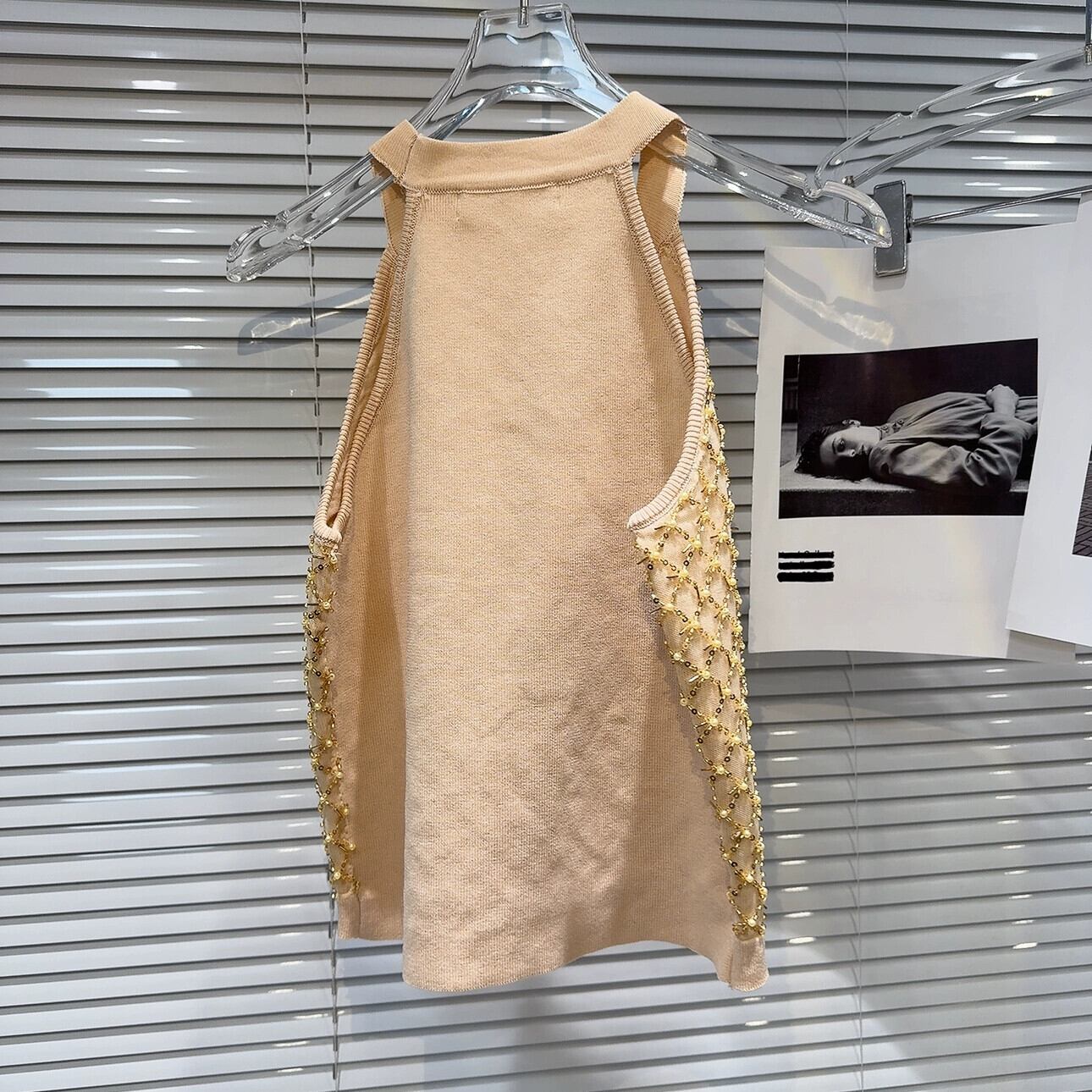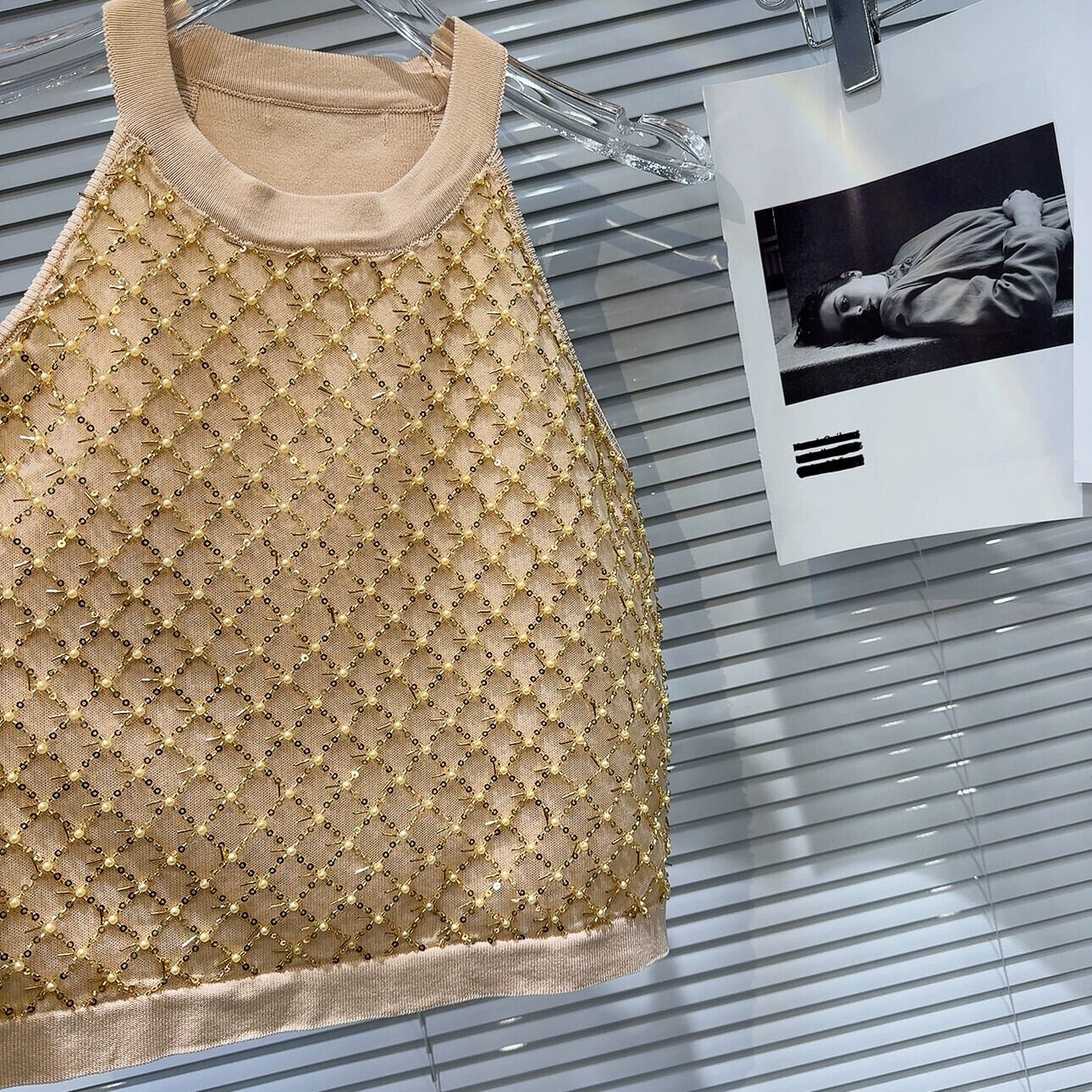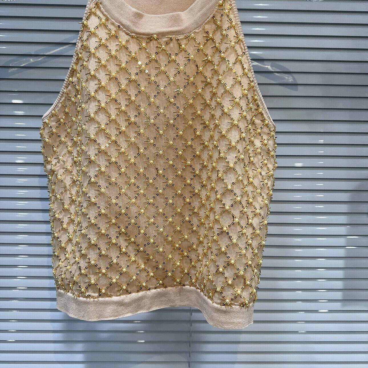 ネットセレブ同スタイル 2024 春夏新作モデル ビーズ スパンコール 菱形 メッシュ メッシュ ホルターネック ニット キャミソール レディース スプリング 春物 サマー 夏物 gyan3360610239449 | vestitialla