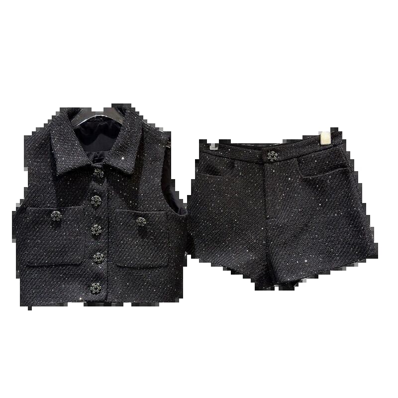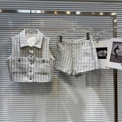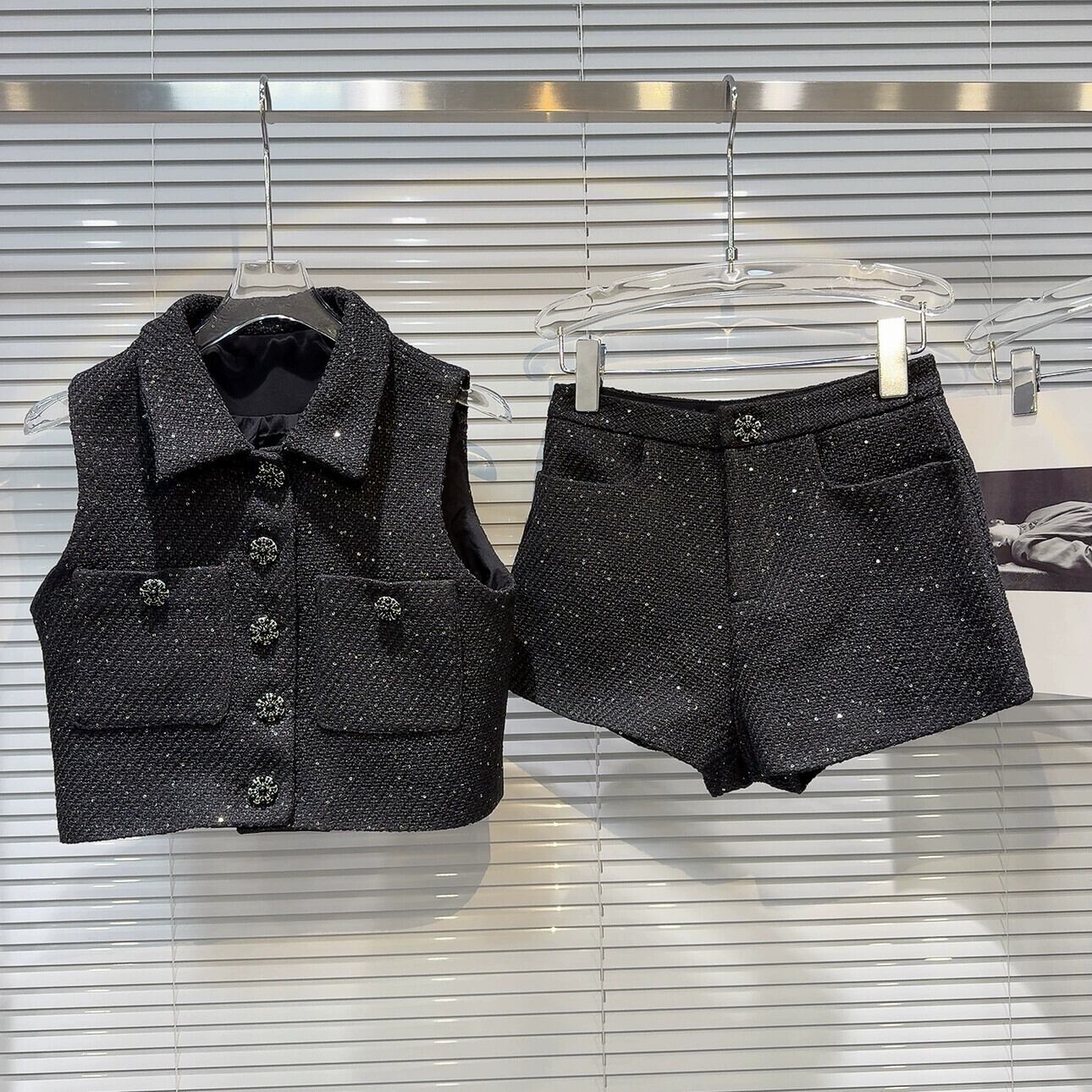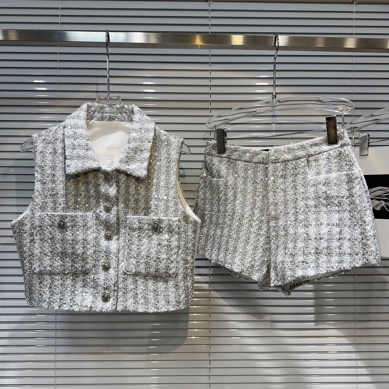インターネットセレブの同じスタイル 2024 春夏の新しいスタイルの小さな香りのスタイルのセレブ明るいシルクツイードベスト + ショートパンツスーツ女性 スプリング 春物 サマー 夏物 ショーツ ブルマー gyan3345707024072 | vestitialla