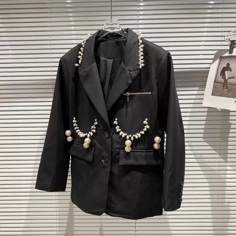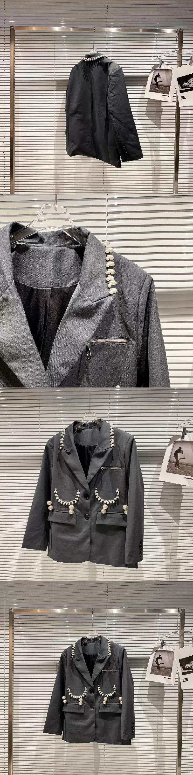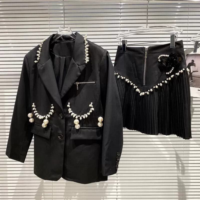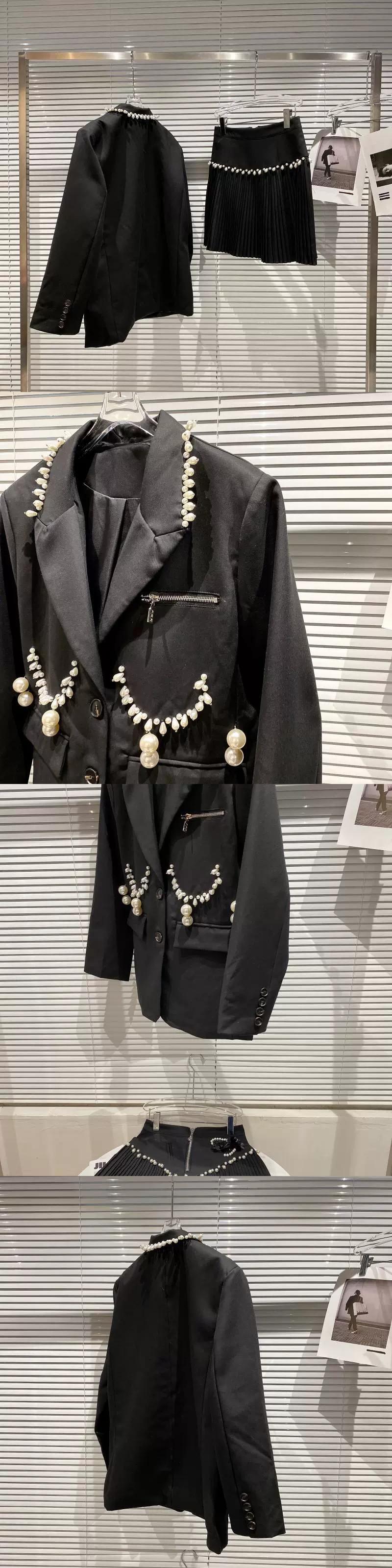 ネット有名人同スタイル2024春新作パールペンダントスーツブレザー+パールフラワープリーツスカートスーツ スプリング 春物 真珠 フラワーデザイン gyan3390522734887 | vestitialla