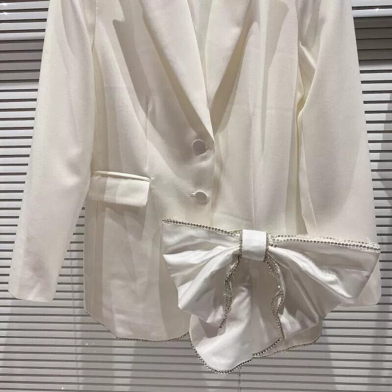 インターネット有名人の同じスタイルの2024春の新しいスタイルの長袖スーツジャケット、ラインストーンのエッジと光沢のある大きなリボンのデザイン ロング スプリング 春物 gyan3361771878926 | vestitialla