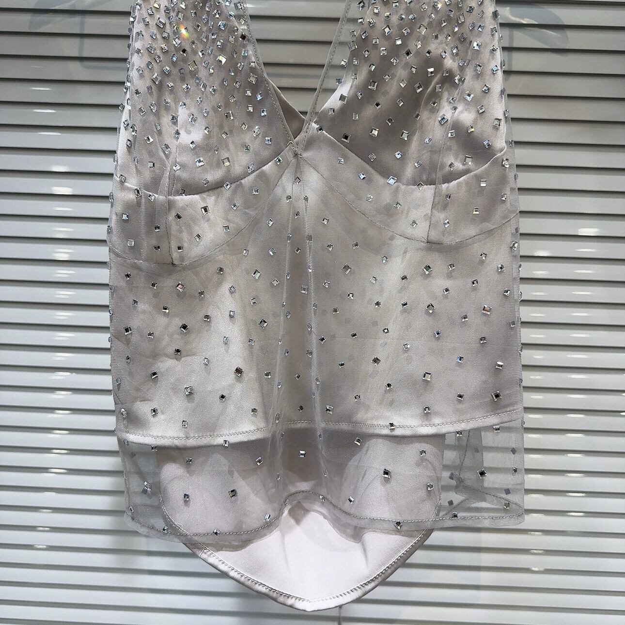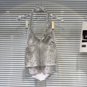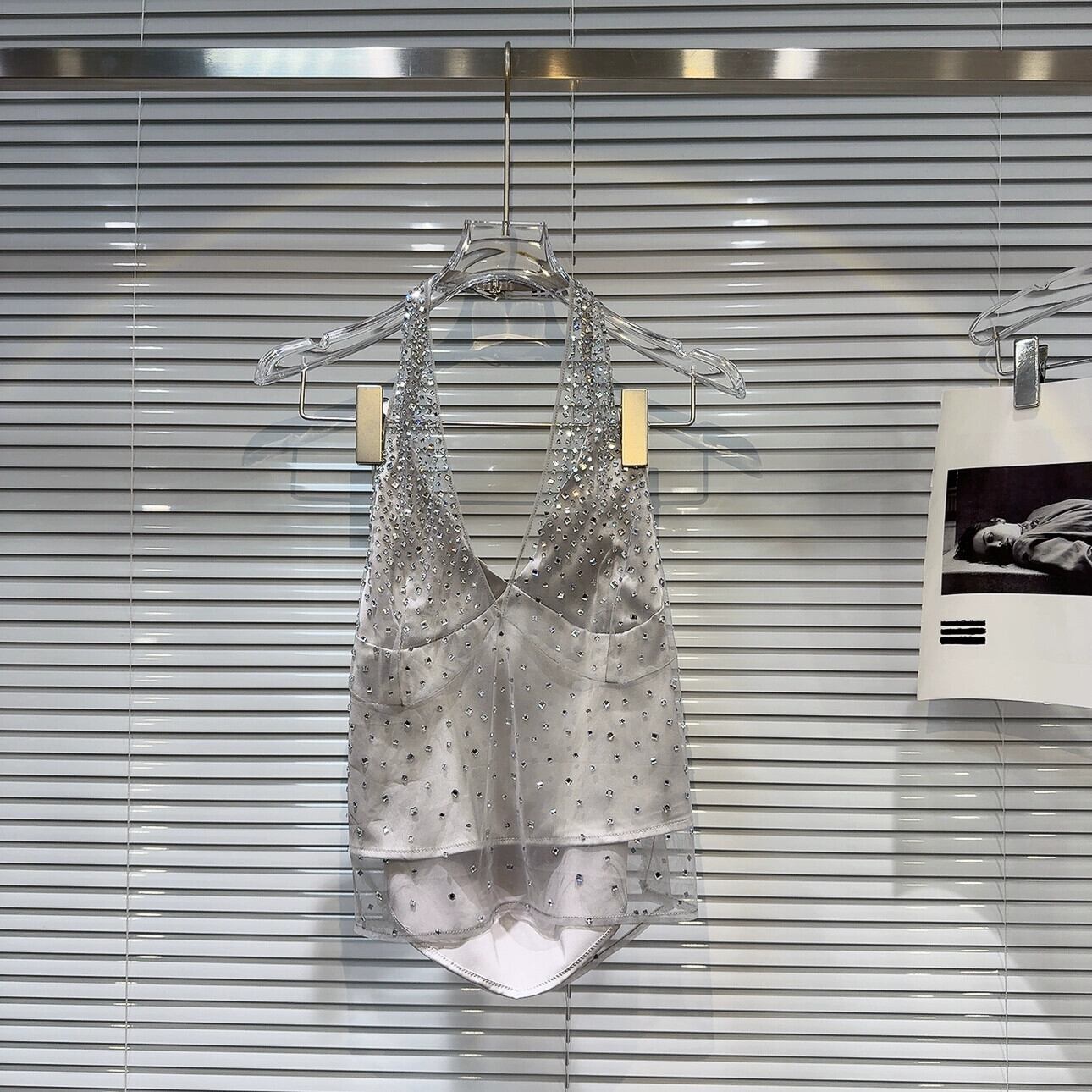 インターネットセレブの同じスタイル 2024 夏の新しいセクシーなセレブスクエアラインストーンダイヤモンドアウターメッシュホルターネックキャミソール サマー 夏物 スクウェア gyan3393687387661 | vestitialla
