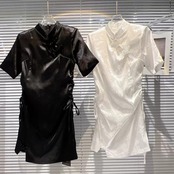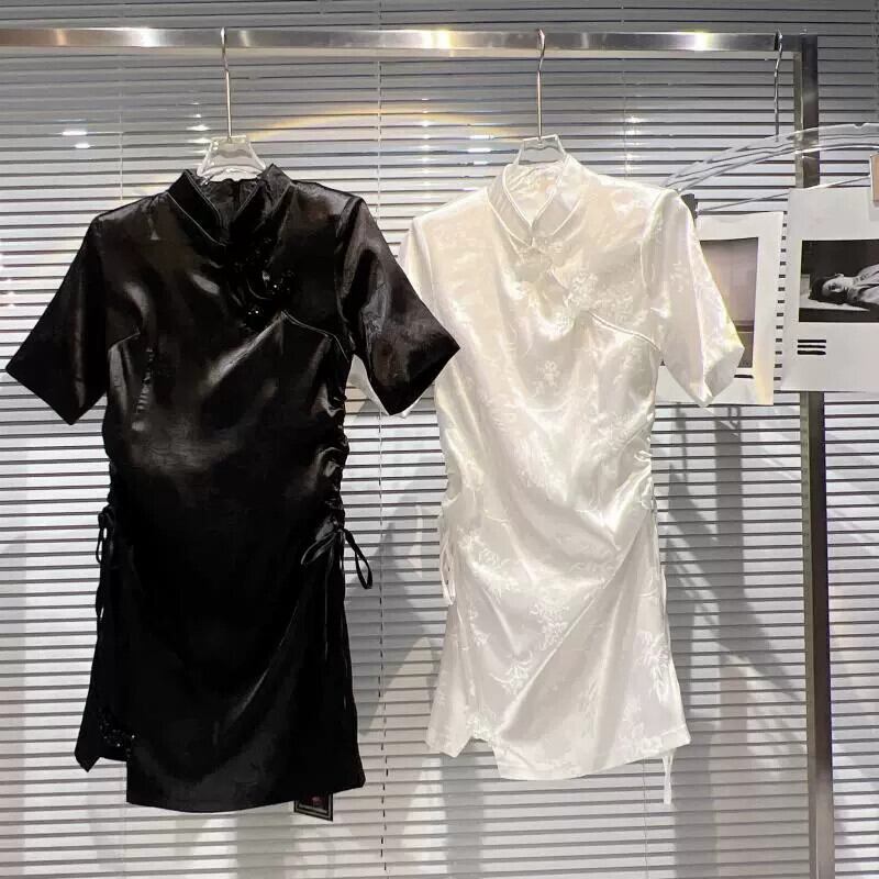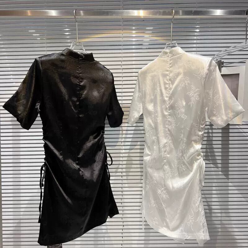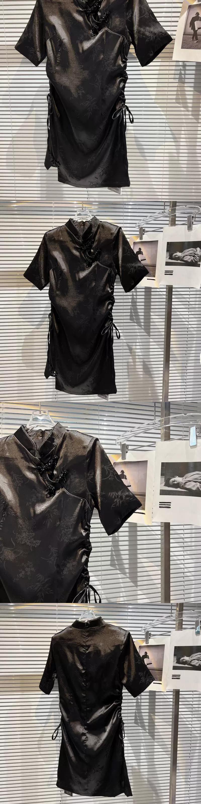 インターネットセレブと同じスタイル 2024 春の新スタイル小さな香りスタイルレトロバックル花柄ダークパターンサイド巾着チャイナスカートドレス スプリング 春物 gyan3323642736107 | vestitialla