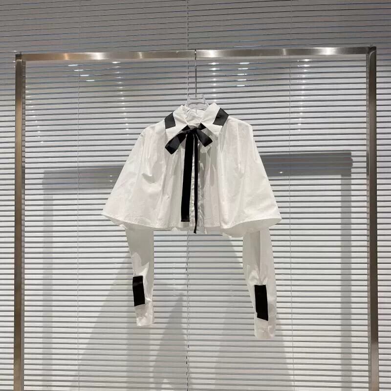ネットセレブと同じスタイル 2024 春の新作レースアップ蝶ネクタイショート JK シャツ長袖ショールスタイルシャツ女性 ロング リボン スプリング 春物 gyan3313102315478 | vestitialla