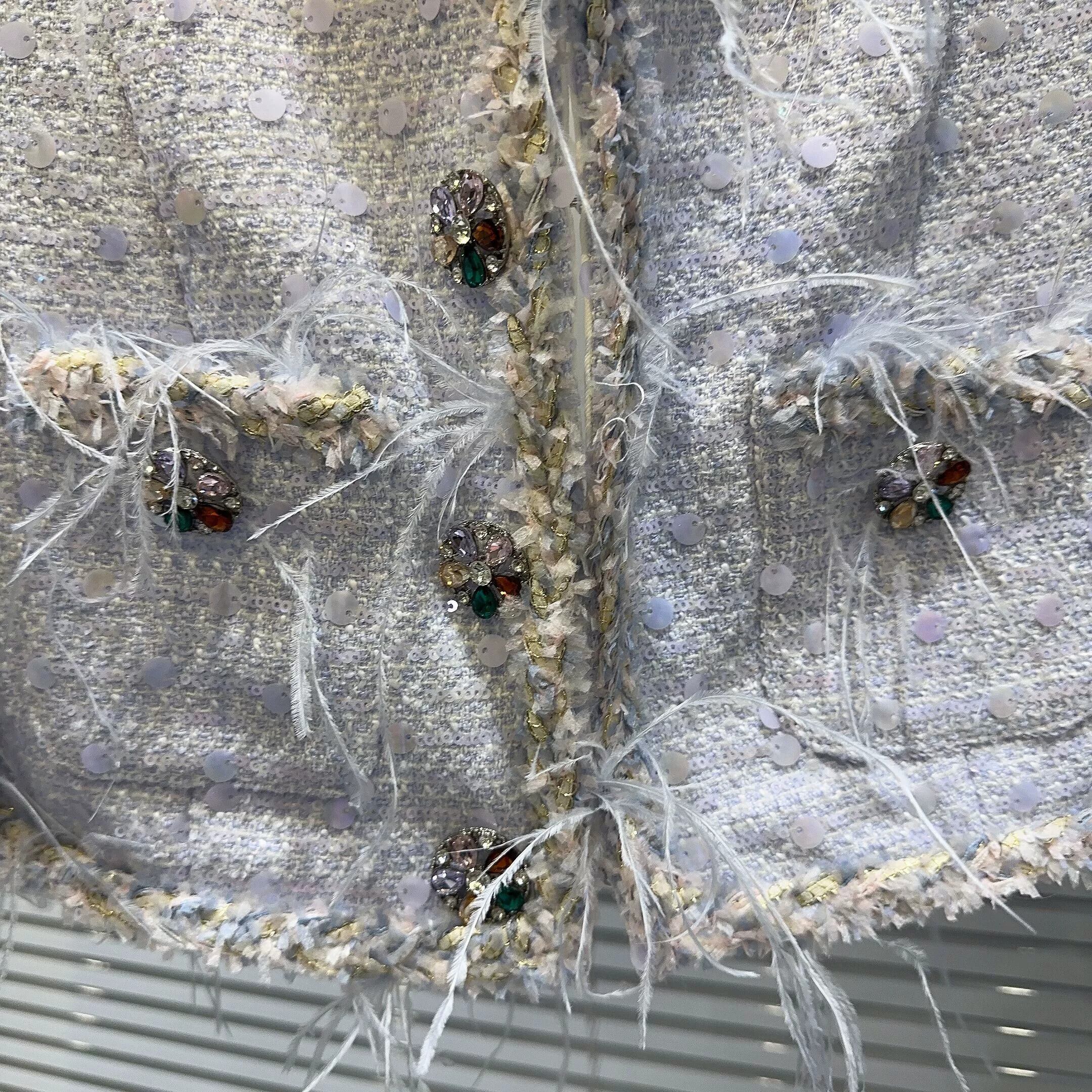 ネット有名人の同じスタイル 2024 春の新スタイル スモールフレグランス 高精細ダイヤモンドバックル フェザー スパンコール ツイード レディース ショートコート 女性 スプリング 春物 gyan3336743239442 | vestitialla