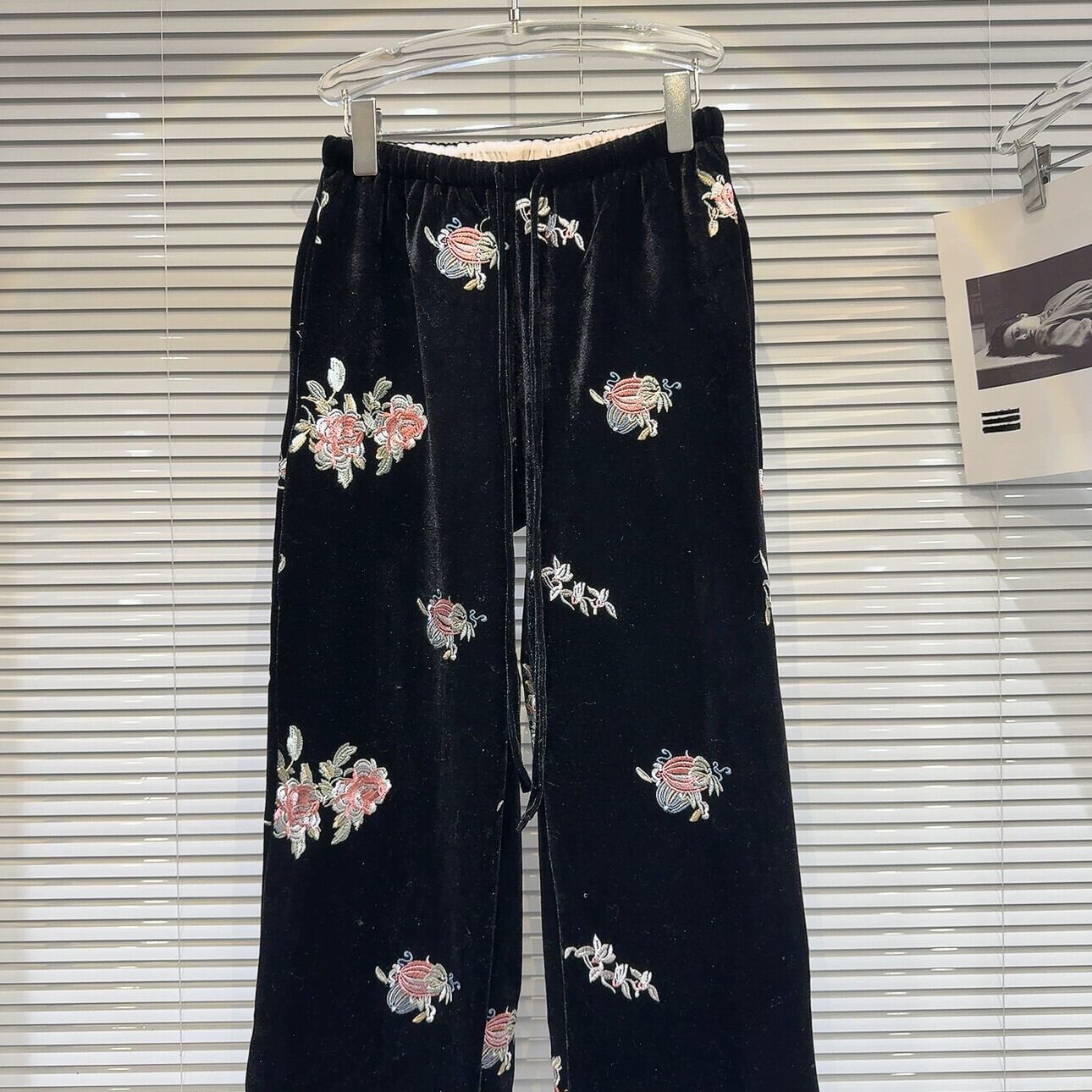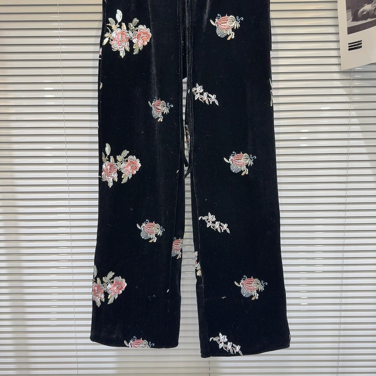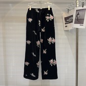 インターネット有名人の同じスタイル2024冬の新しいニッチスタイルエスニックスタイル刺繍花巾着弾性ウエストベルベットカジュアルパンツ レッド エラスティック 伸縮 ウィンター 冬物 フラワーデザイン gyan3345385718928 | vestitialla