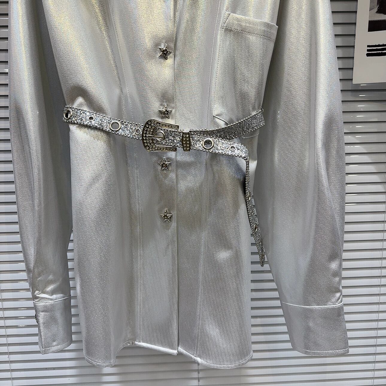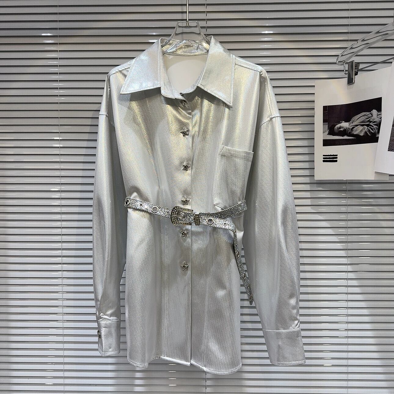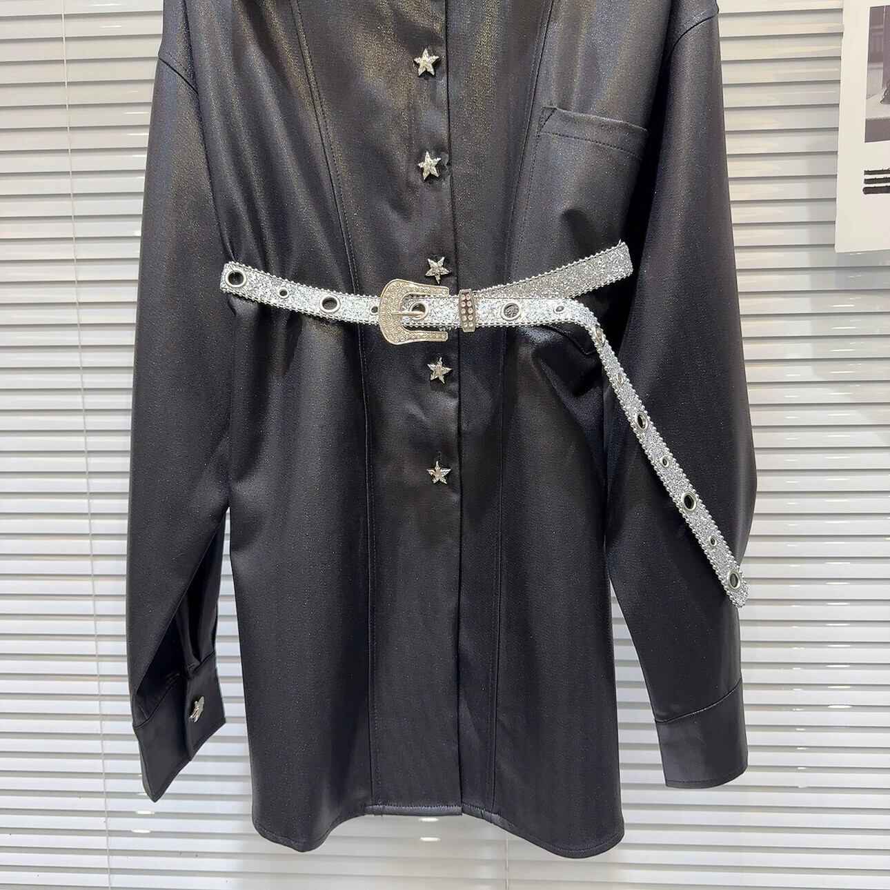 インターネットセレブと同じスタイル2024春の新しいニッチスタイルラインストーンベルト五芒星バックルミドル丈シャツシャツ スプリング 春物 ハーネス gyan3346491800000 | vestitialla