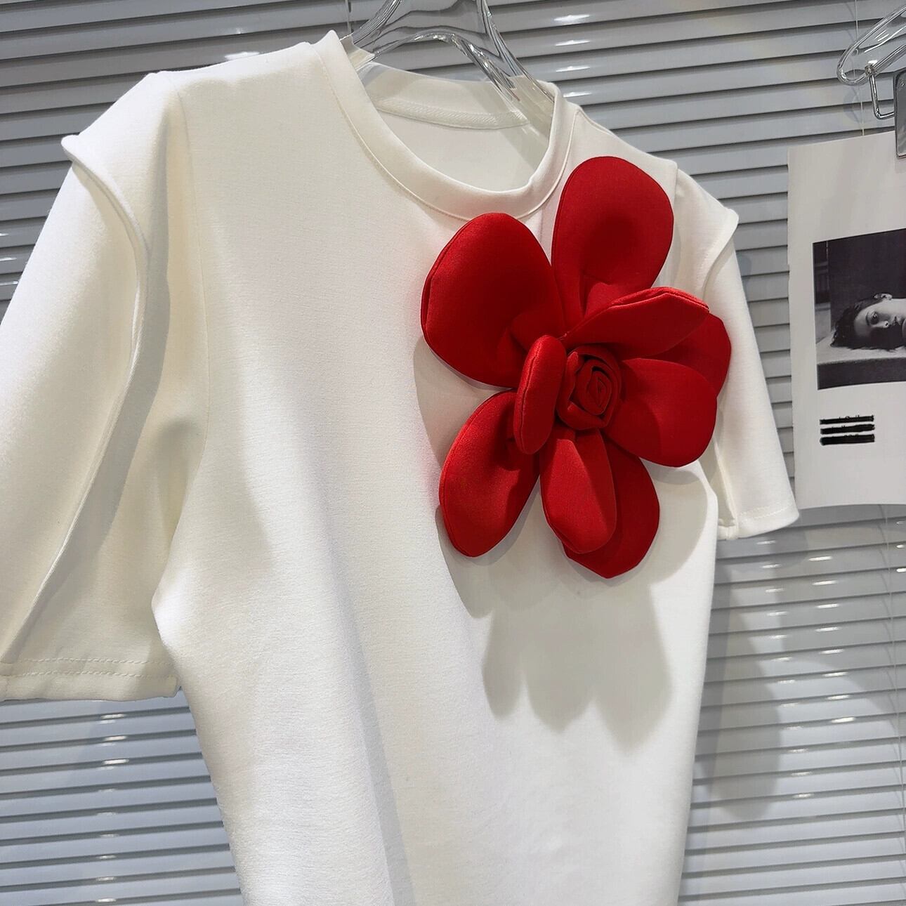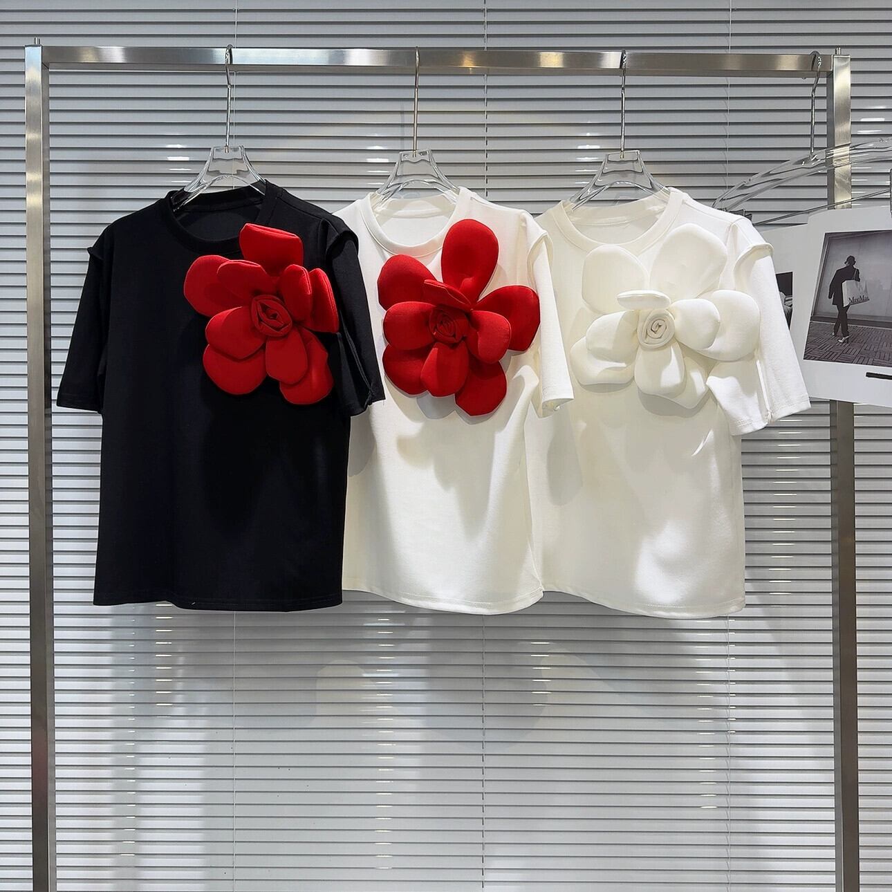 ネットセレブの2024年新作夏スタイル小さな香りスタイル立体ひまわりコントラストデザイン半袖半袖Tシャツ サマー 夏物 フラワーデザイン gyan3380044078550 | vestitialla