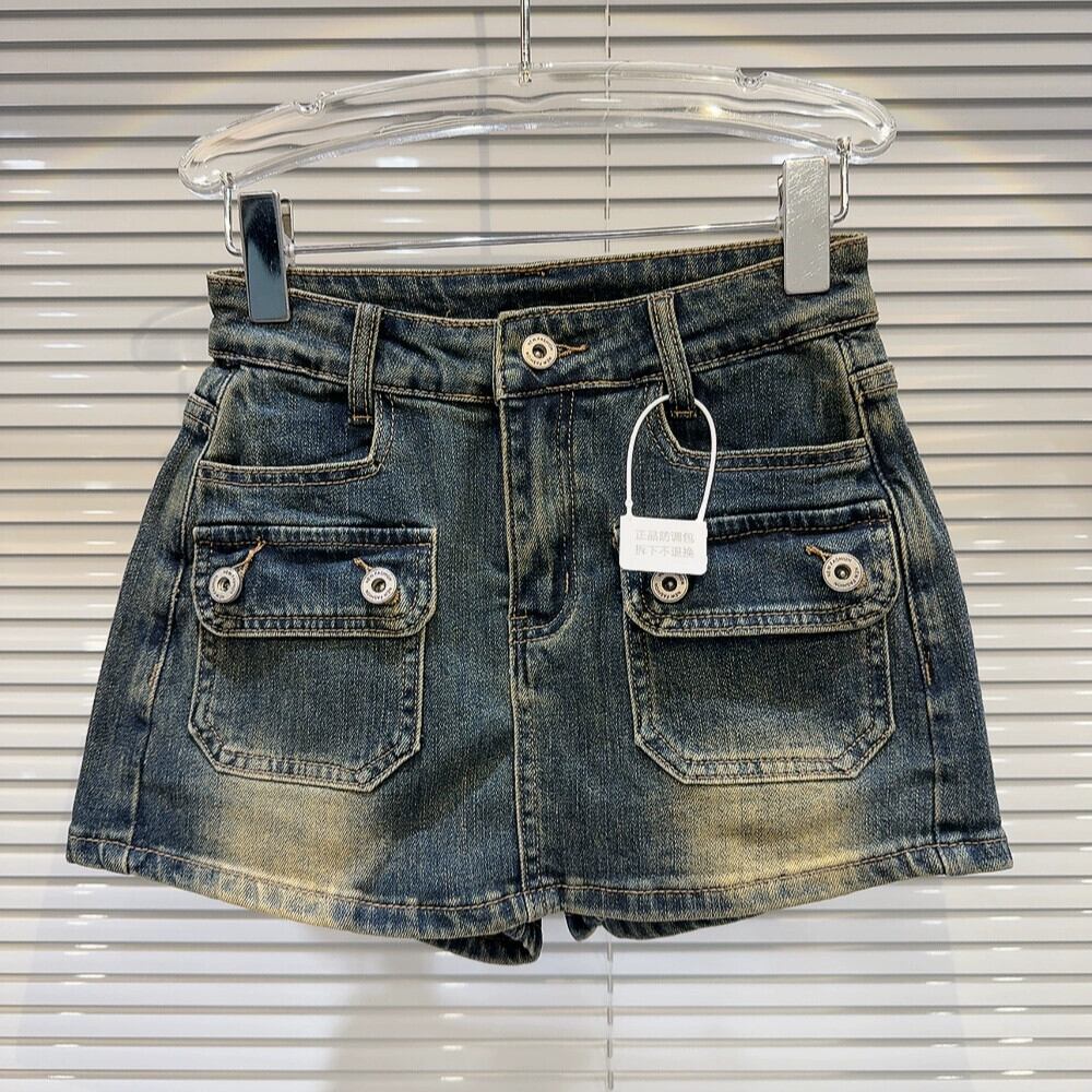 インターネット有名人同じスタイル 2024 春の新アメリカンレトロ作業着ポケットウォッシュ加工ジーンズスカートヒップスカート女性 スプリング 春物 gyan3329553209614 | vestitialla