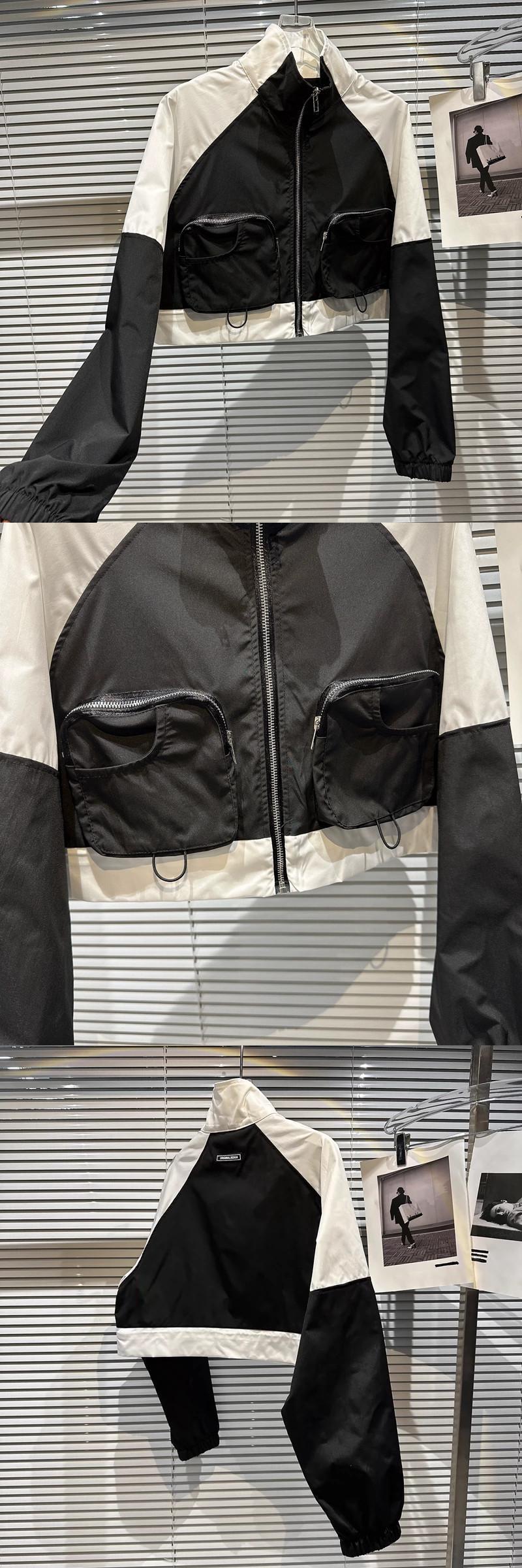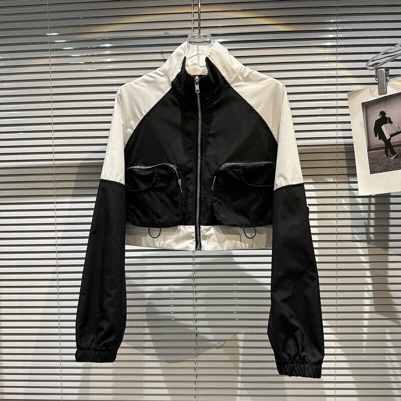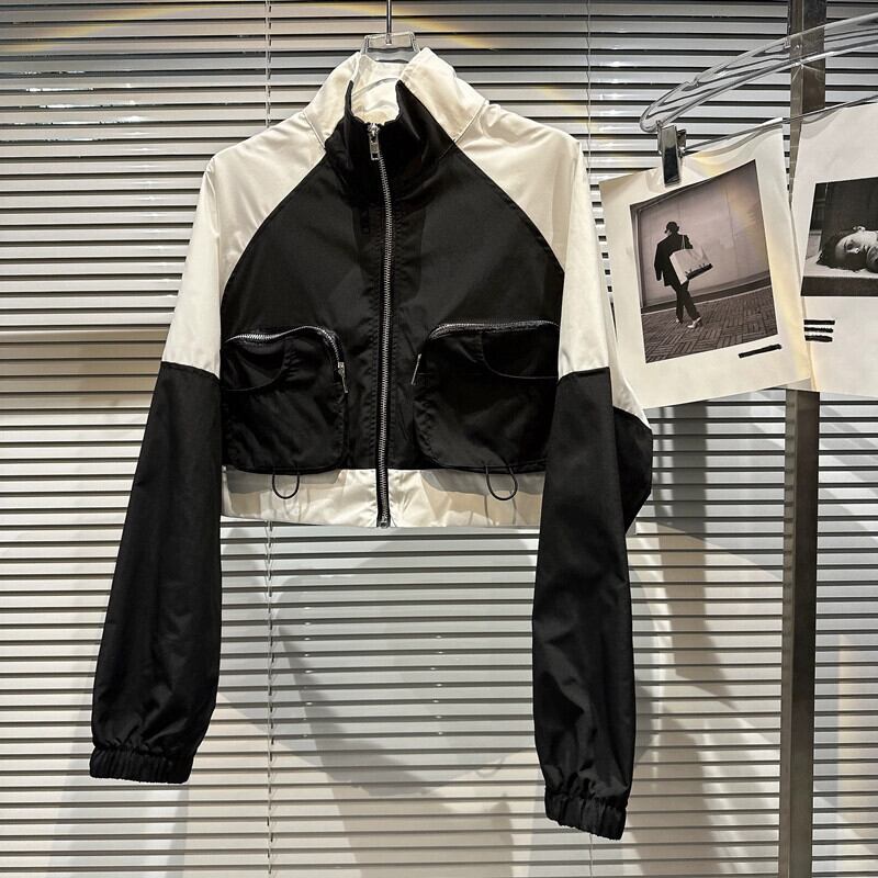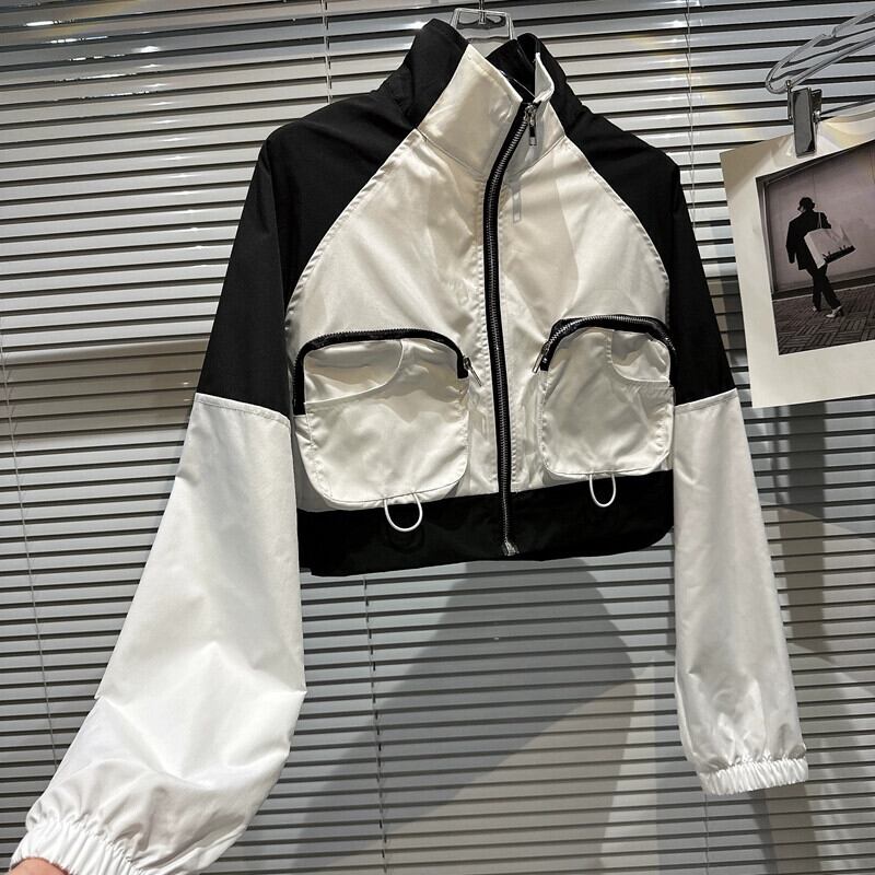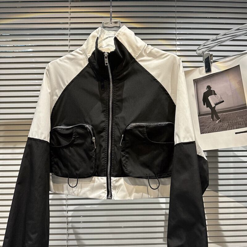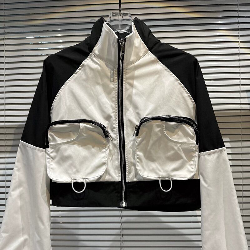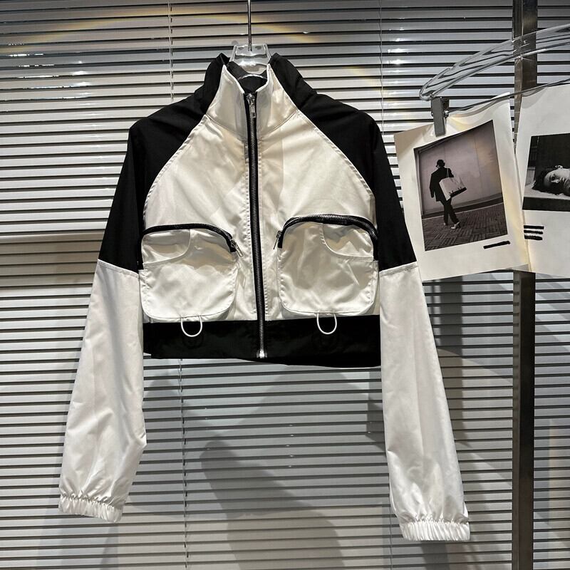 ネット有名人の同じスタイル 2024 春の新作ストリートダブルポケットジッパー黒と白のコントラストカラーショートコートジャケット女性 ホワイト ブラック スプリング 春物 gyan3352400358002 | vestitialla