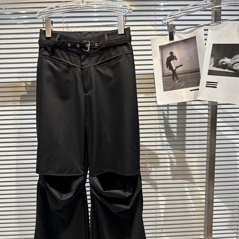 インターネットセレブと同じスタイル 2024 夏の新しいニッチモデル膝中空ソリッドカラーハイストリート機能性ワークウェアワイドレッグパンツ女性トレンディな サマー 夏物 ワイドパンツ gyan3363725561732 | vestitialla