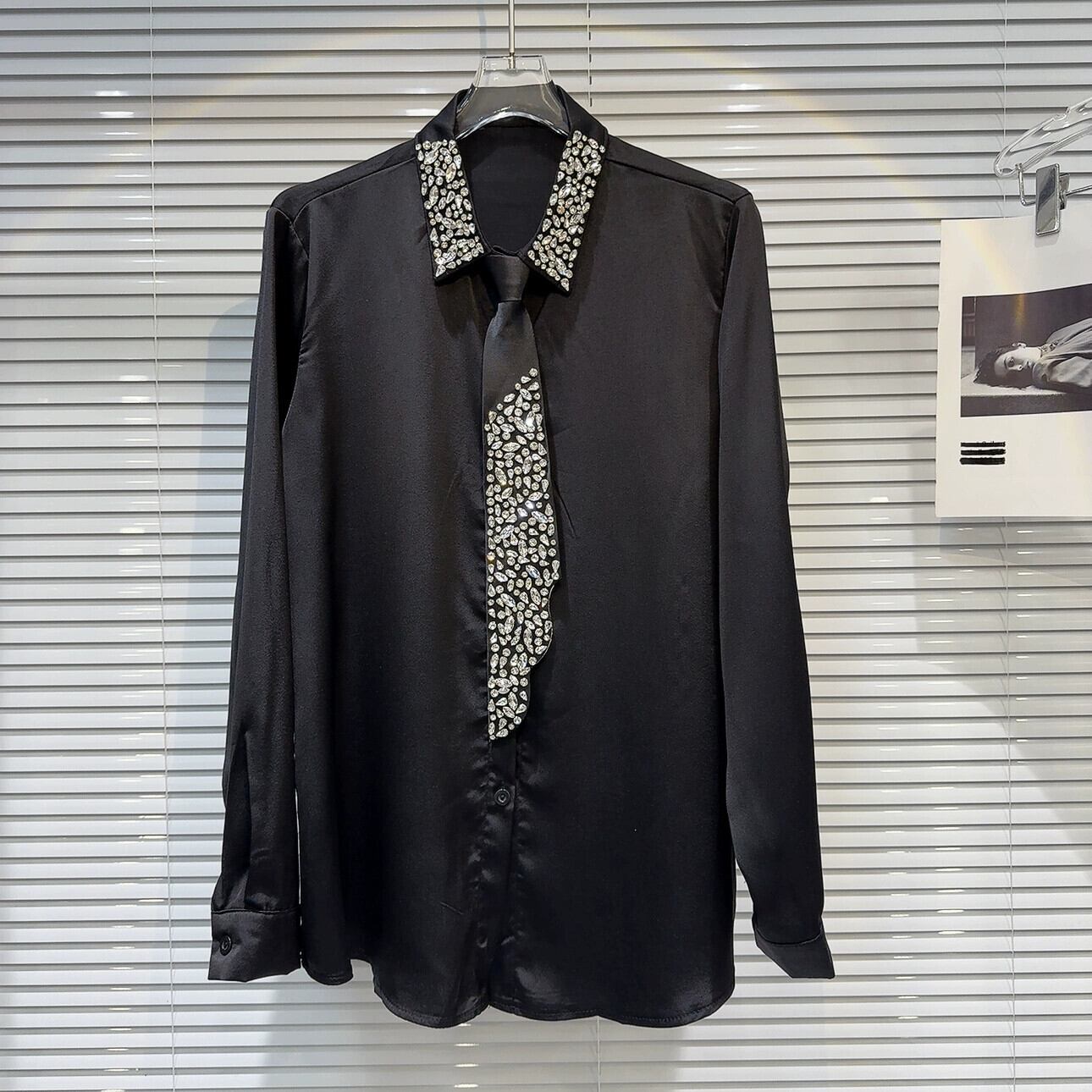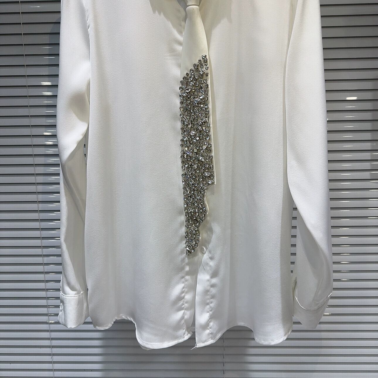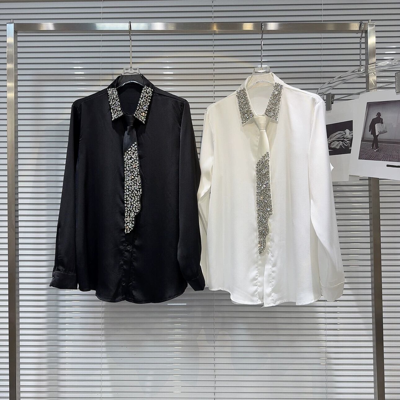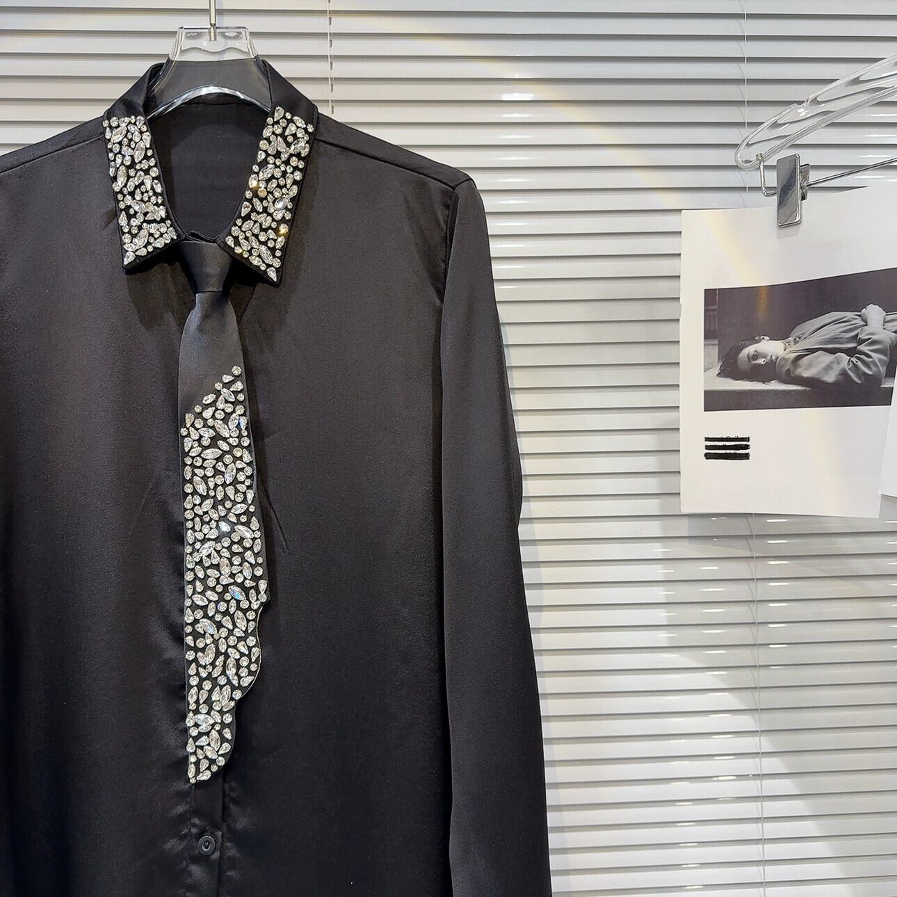 インターネットセレブと同じスタイル2024春の新スタイルダークセレブグレインラインストーンビーズネクタイ重工業シルケットシャツシャツ スプリング 春物 gyan3359945586141 | vestitialla