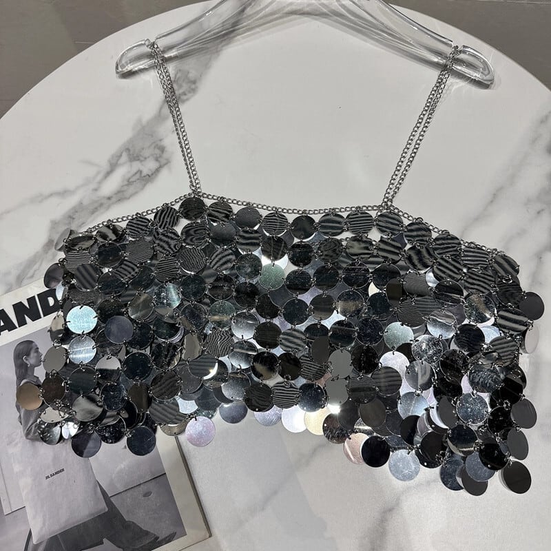 インターネットセレブの同じスタイル2024春の新しいストリートスタイル大きなスパンコールメタルチェーンパーマンスナイトクラブキャミソールアウターウェア スプリング 春物 gyan3362147357283 | vestitialla