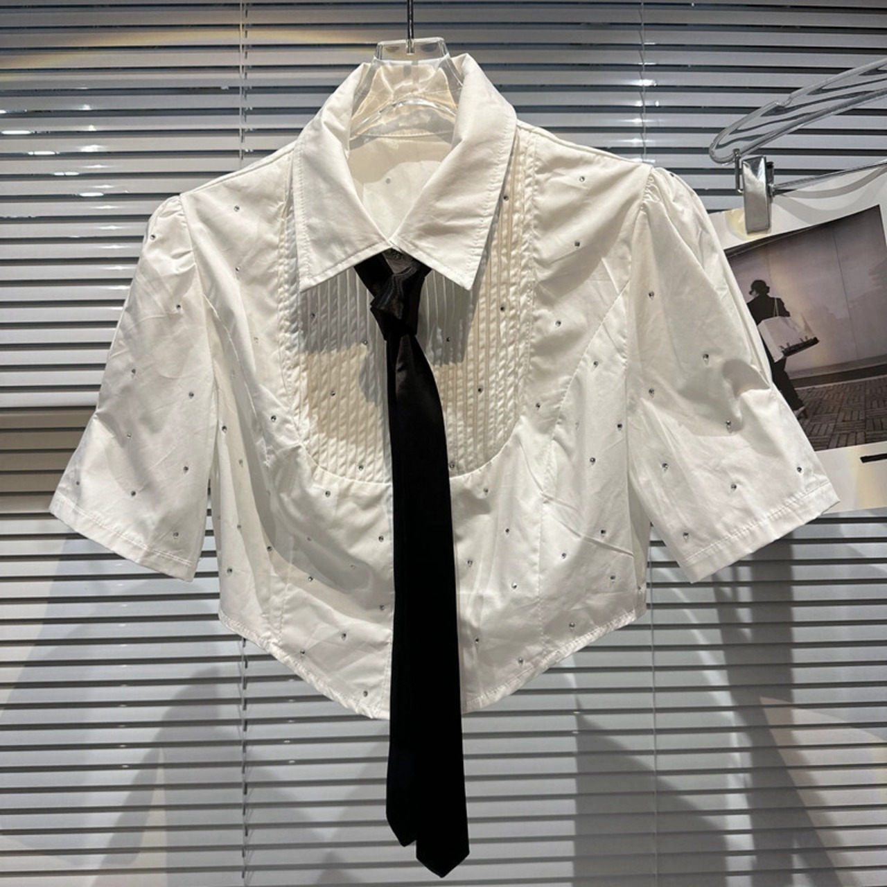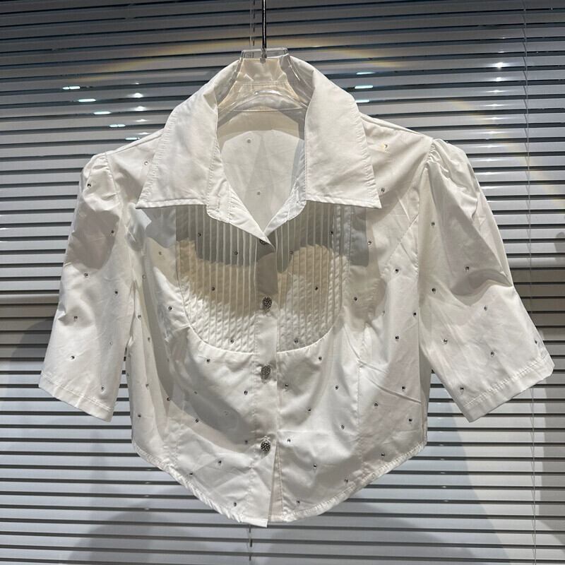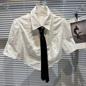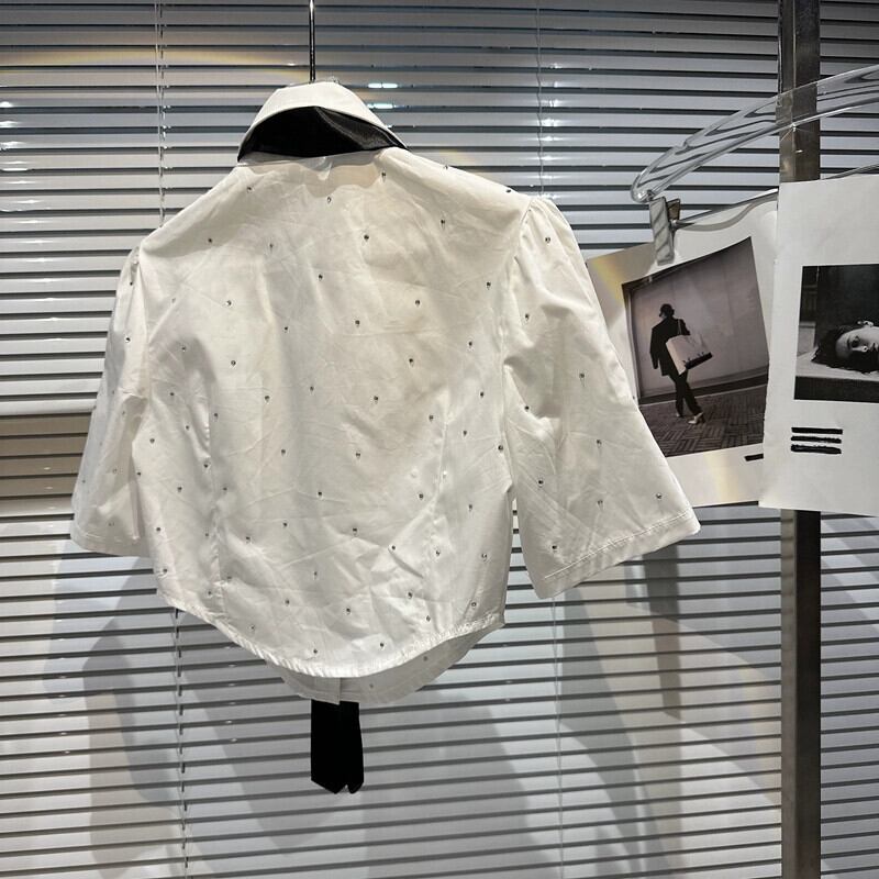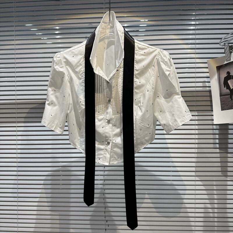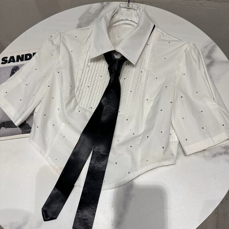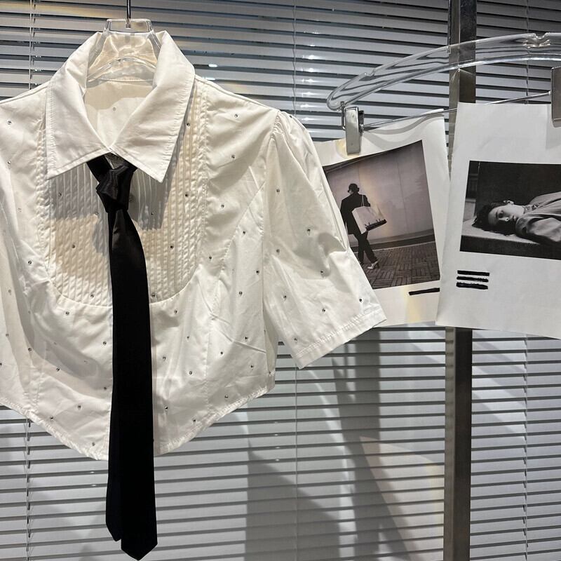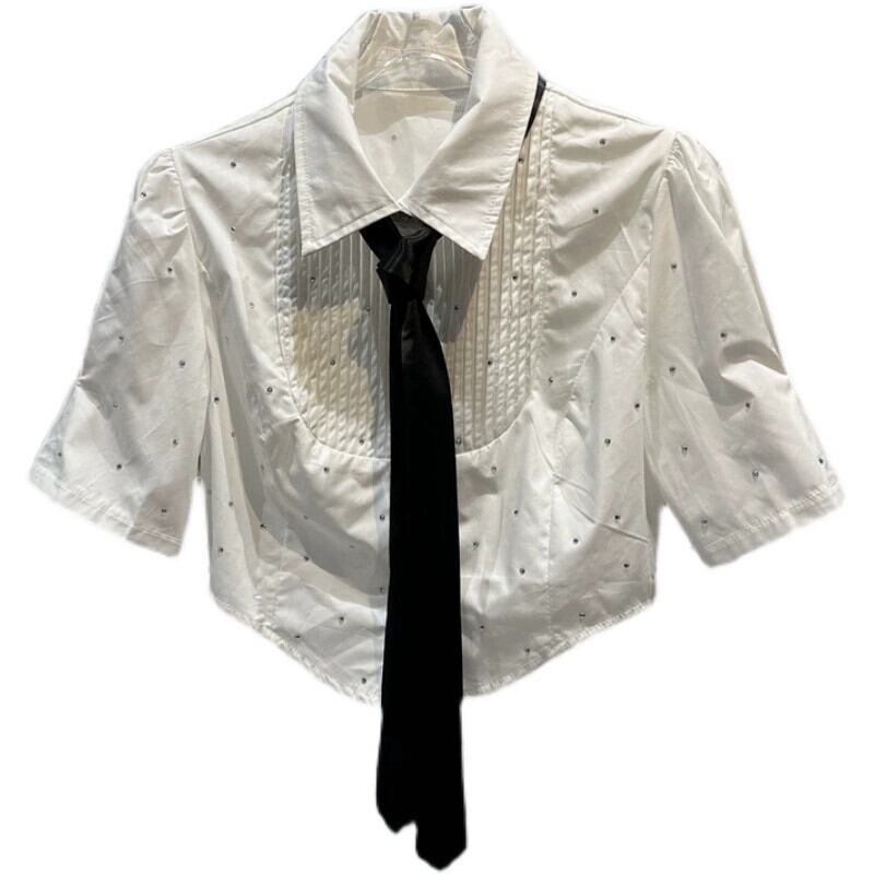 インターネットセレブと同じスタイル 2024 春の新粒状ラインストーンダイヤモンドネクタイ半袖ショートシャツシャツ女性 スプリング 春物 gyan3382806677312 | vestitialla
