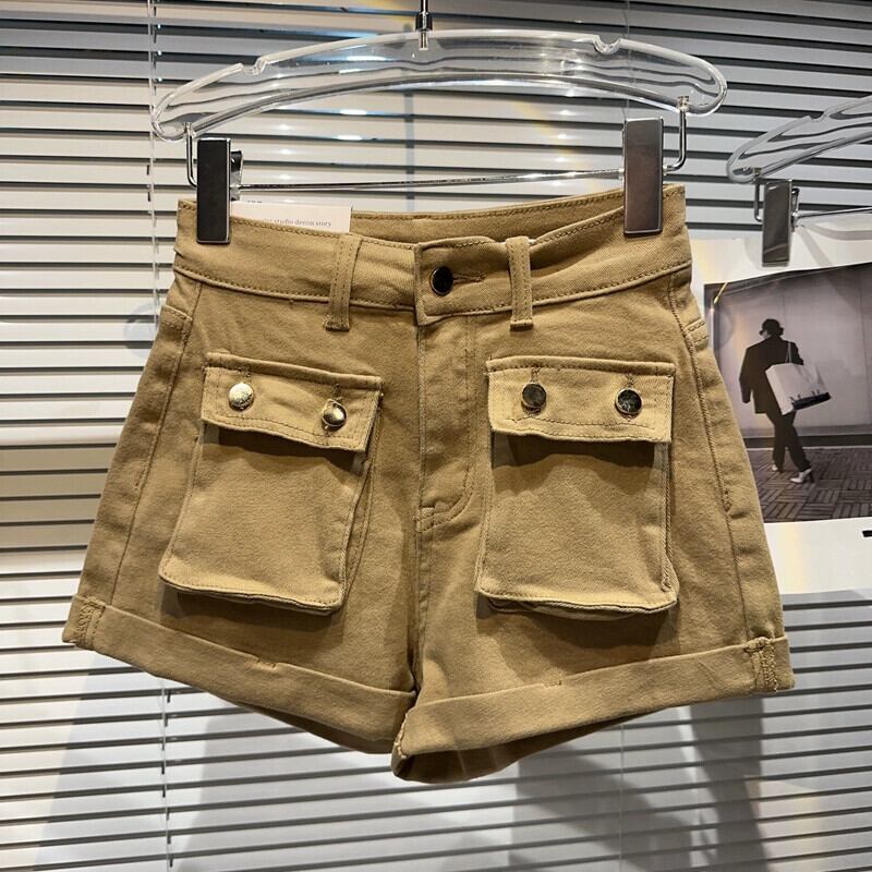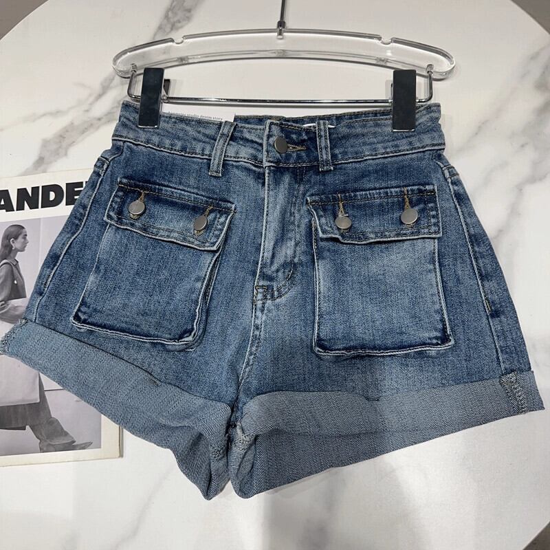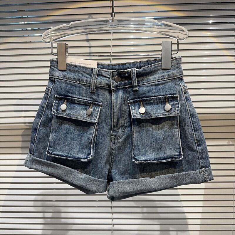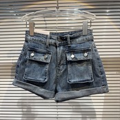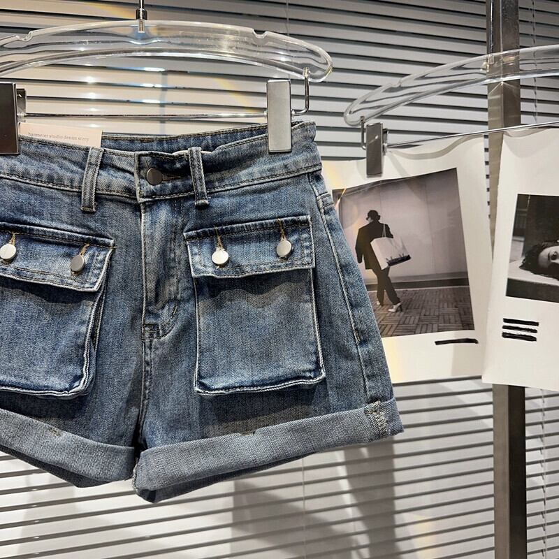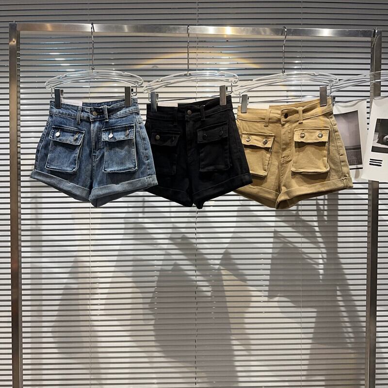 インターネット有名人の同じスタイル2024夏の新しいニッチスタイル大きなポケットカフスパンツアメリカンルーズワークウェアデニムショートパンツ サマー 夏物 ショーツ ブルマー gyan338605388631 | vestitialla