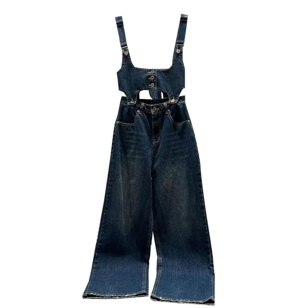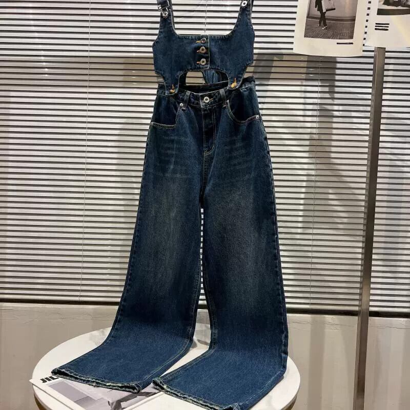 インターネットセレブと同じスタイル 2024 春の新しいストリートサスペンダー取り外し可能なデザインウォッシュワイドレッグデニムオーバーオール女性トレンディ スプリング 春物 gyan335938772228 | vestitialla