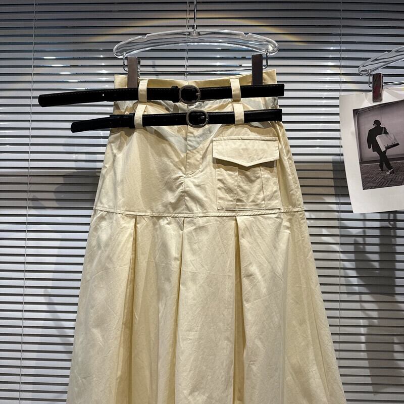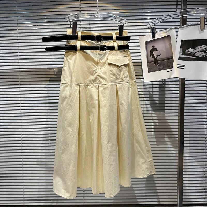 インターネットセレブと同じスタイル 2024 夏の新しいニッチモデル ダブルベルト装飾エレガントな女性スリム A ラインスカートプリーツスカート サマー 夏物 ハーネス Aライン gyan3348326253714 | vestitialla