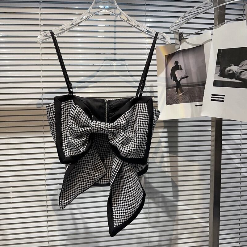 インターネット有名人同じスタイル2024春の新スタイル小さな香りのスタイル小さな格子縞の胸大きな蝶の気質キャミソールベスト女性 スプリング 春物 gyan3382437933296 | vestitialla