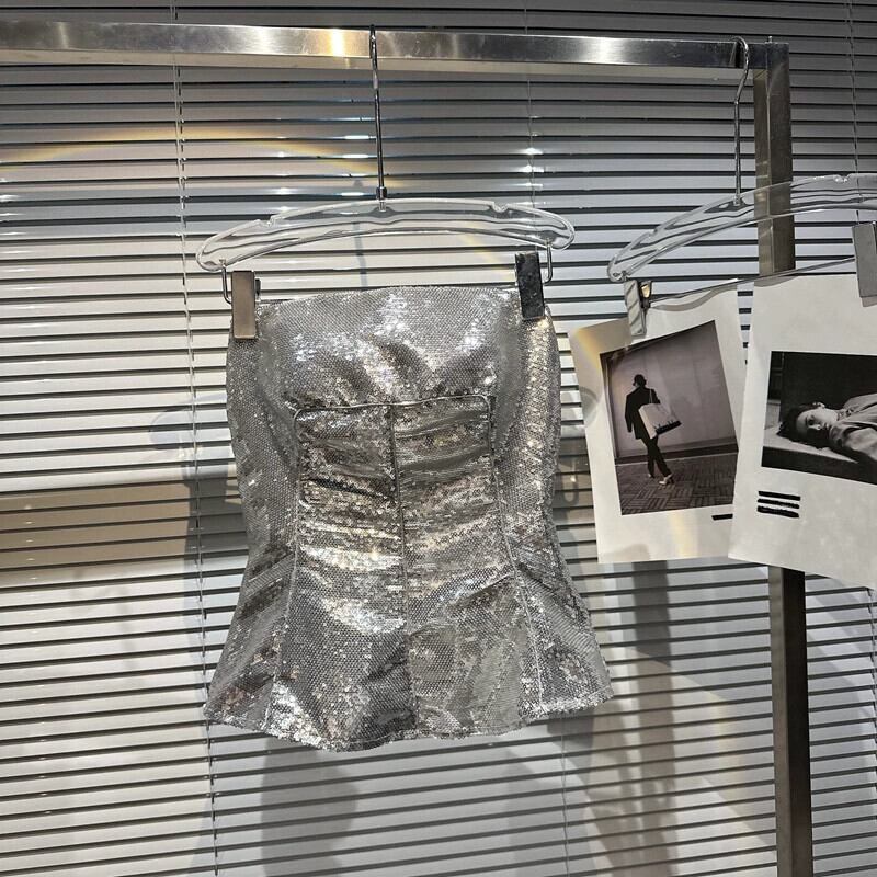 インターネットセレブの同じスタイル2024春の新スタイルエレガントな女性はスパンコールがいっぱい光沢のあるウエスト痩身チューブトップ女性 スプリング 春物 gyan3313776016716 | vestitialla