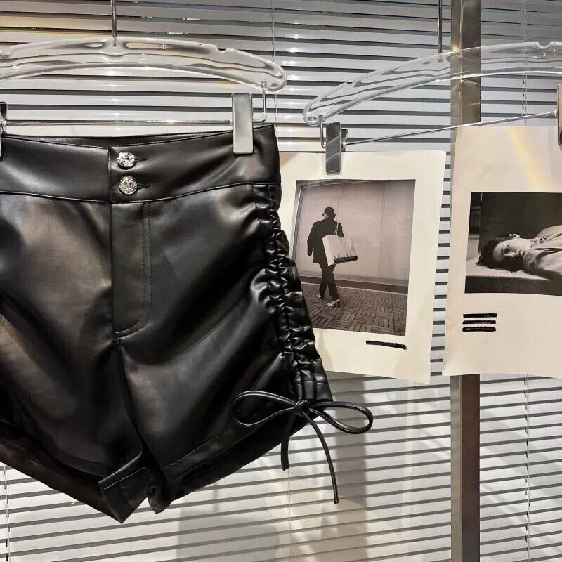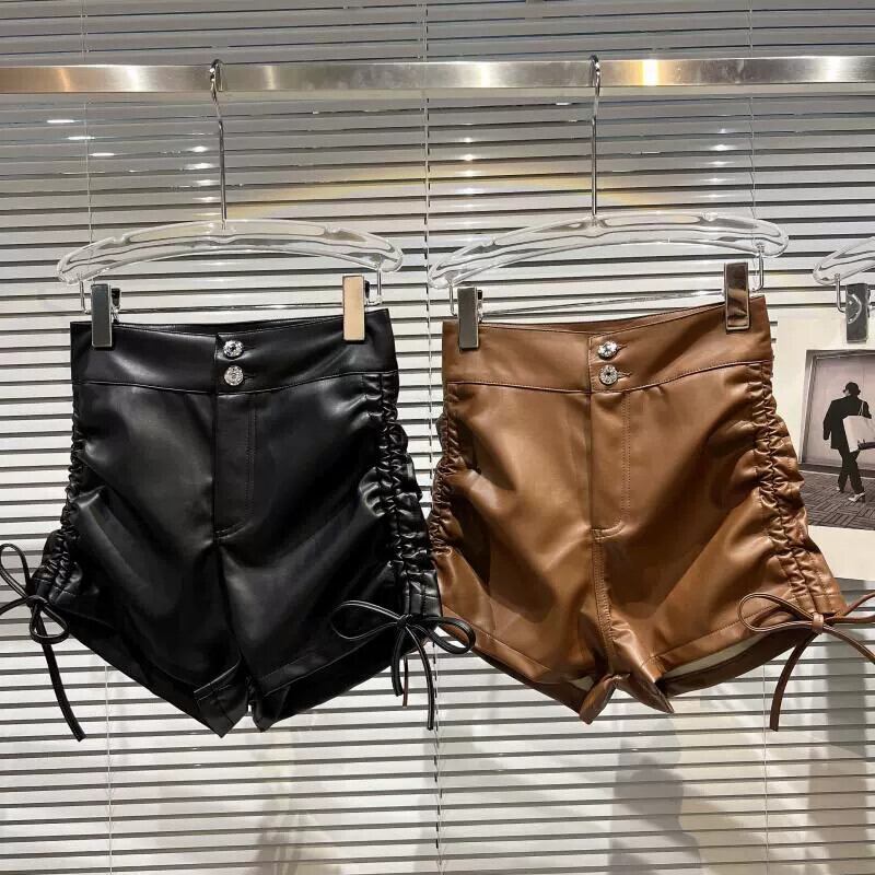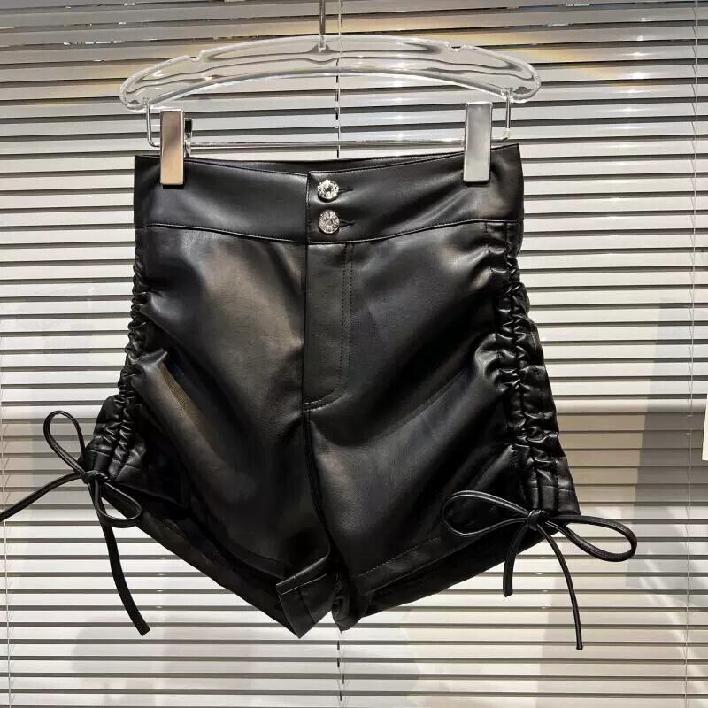インターネットセレブと同じスタイル 2024 春の新作ダークサイド巾着ストラップスリムオートバイ PU レザー 3 点ショーツ スプリング 春物 ブルマー gyan3314938563416 | vestitialla
