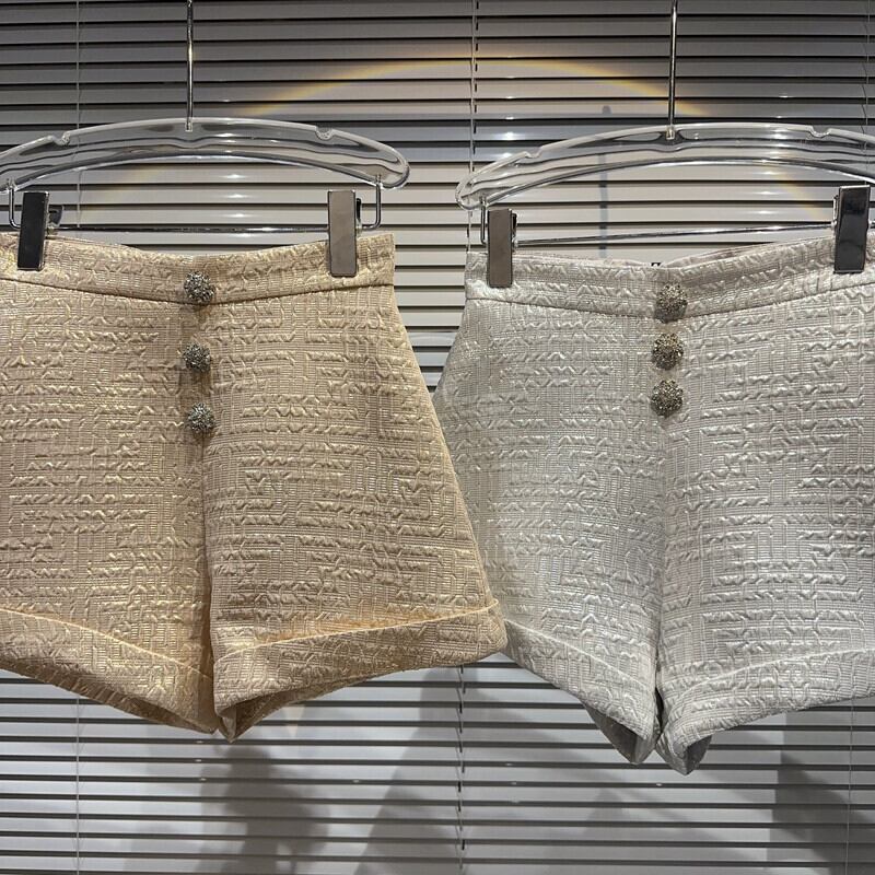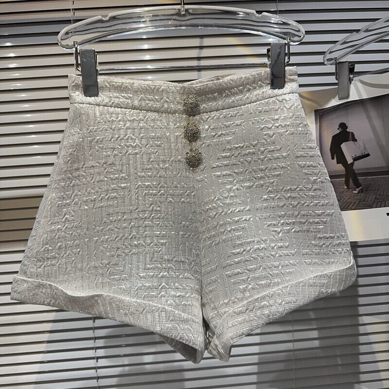 インターネット有名人の同じスタイル 2024 春の新スタイルの小さな香りのよいラインストーンのバックル立体複合プリーツ生地のエレガントな女性のショーツ スプリング 春物 ブルマー gyan3347131852620 | vestitialla