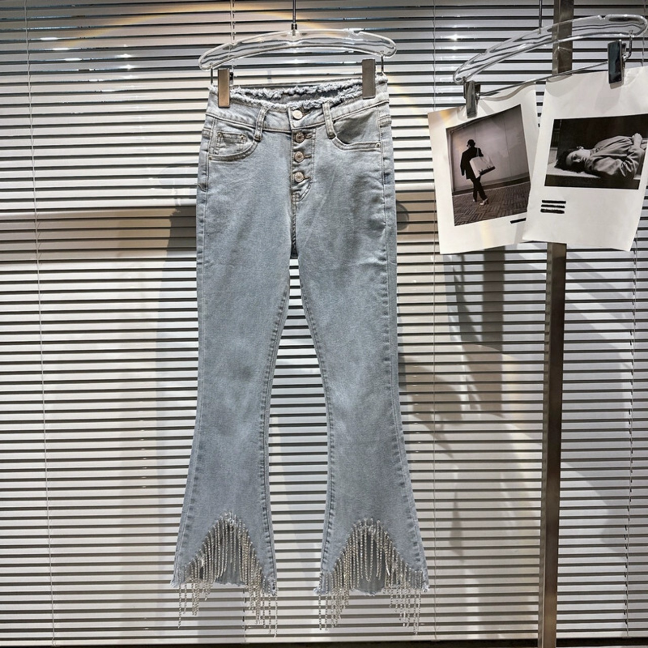 インターネット有名人の同じスタイル2024年初春の新しいスタイルの小さな香りのよいラインストーンテルパンツとタイトな痩身頑丈なブーツカットジーンズ スプリング 春物 gyan3367069552051 | vestitialla