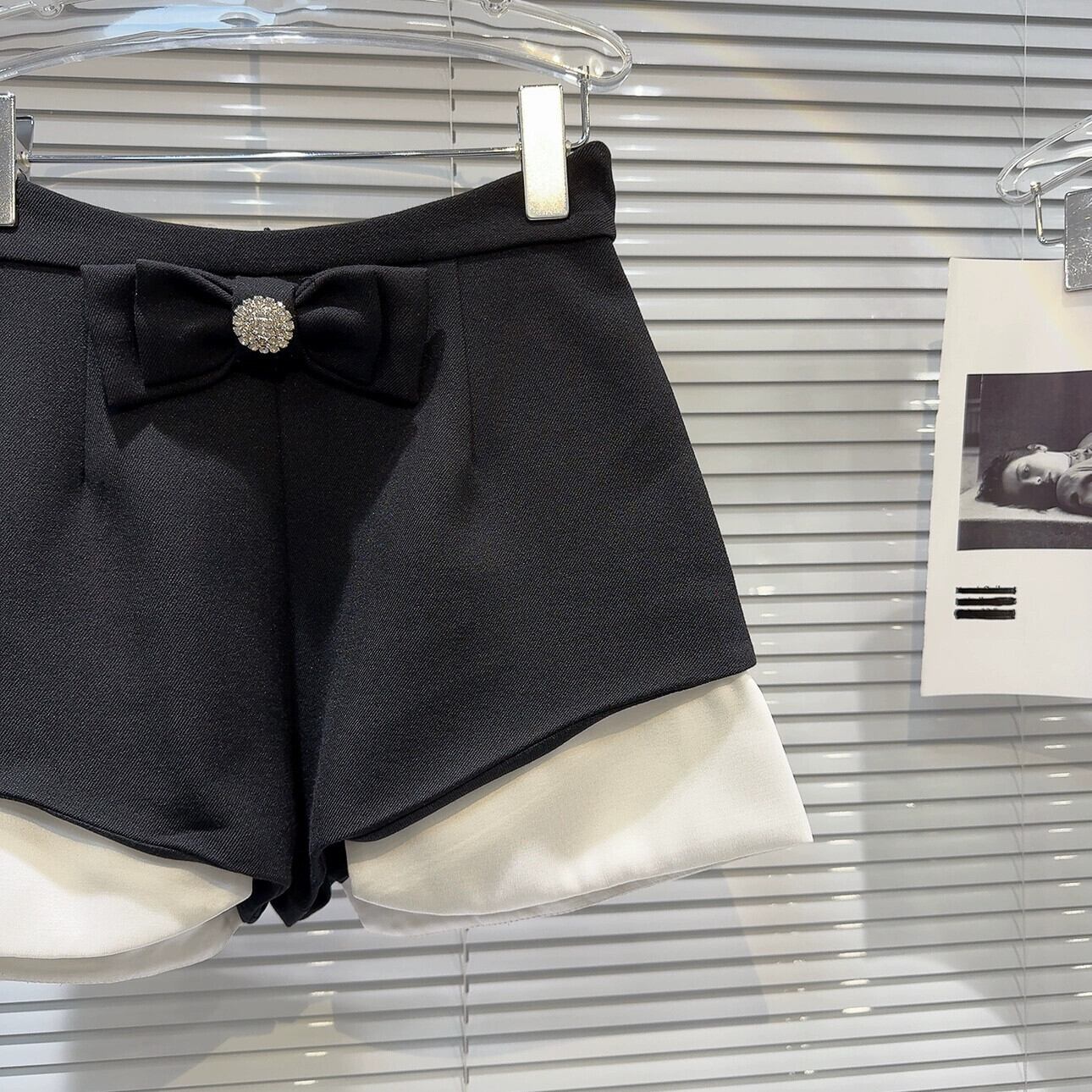ネットセレブ同様 2024 春新スタイルエレガントレディラインストーンリボン装飾コントラストカラーレーススリーポイントショーツ女性 スプリング 春物 ブルマー gyan3368486204501 | vestitialla