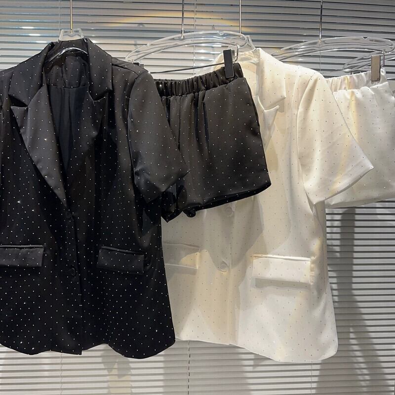 インターネットセレブの同じスタイル2024春の新しいダークセレブ全身ダイヤモンド半袖スーツジャケット+ショートパンツスーツ女性 スプリング 春物 ショーツ ブルマー gyan3340778977827 | vestitialla
