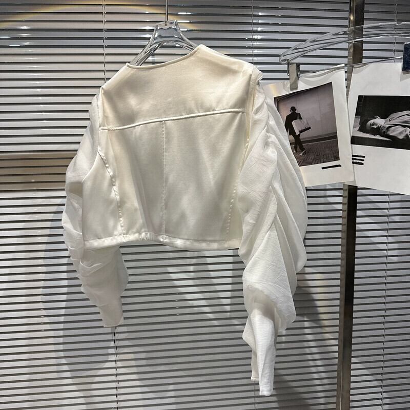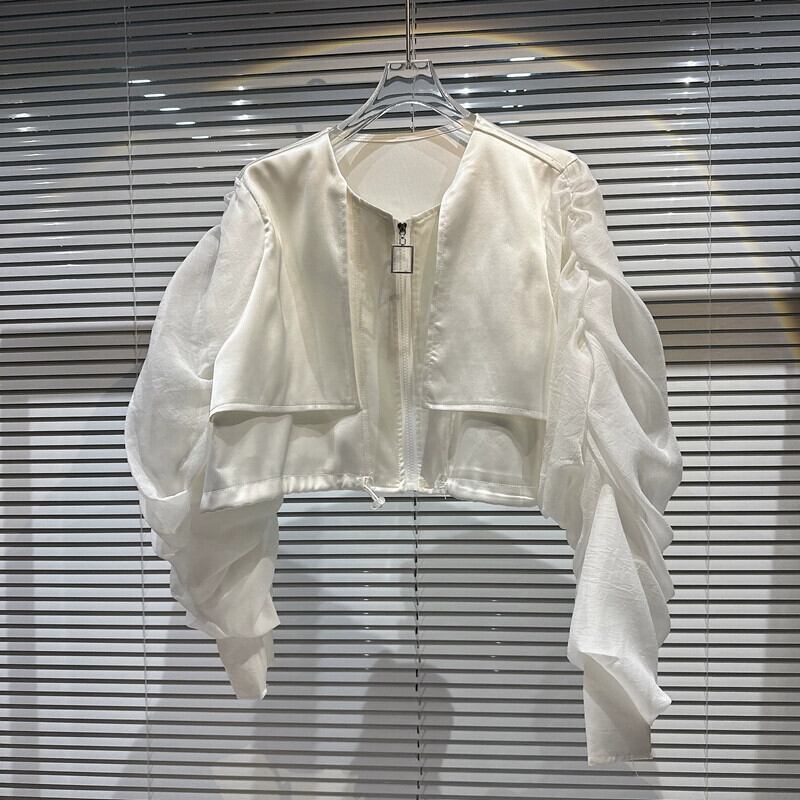 インターネット有名人の同じスタイル 2024 春の新しいニッチスタイルメッシュプリーツスリーブスプライシングルーズショートコートジャケット女性 スプリング 春物 gyan3349433793035 | vestitialla