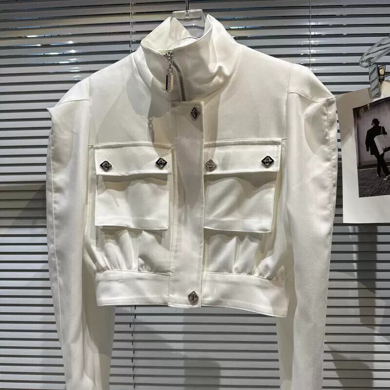 ネットセレブ同スタイル2024春新作ストリートポケットメタルバックルバブルショルダーパッドジャケットショートコートトップ スプリング 春物 gyan3363133163237 | vestitialla