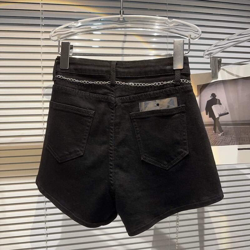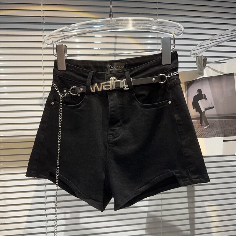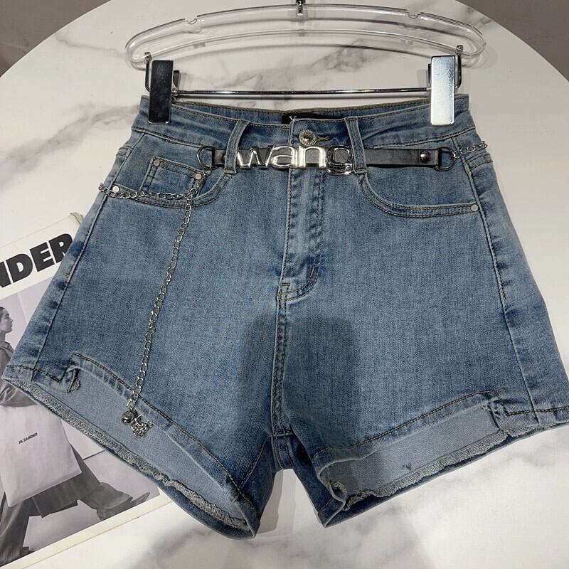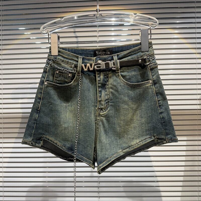 インターネットセレブと同じスタイルの2024春の新作ヨーロッパとアメリカのトレンディなメタルレターウエストチェーンウォッシュ加工デニムショートパンツ スプリング 春物 ショーツ ブルマー ヨーロピアン gyan3374261039818 | vestitialla