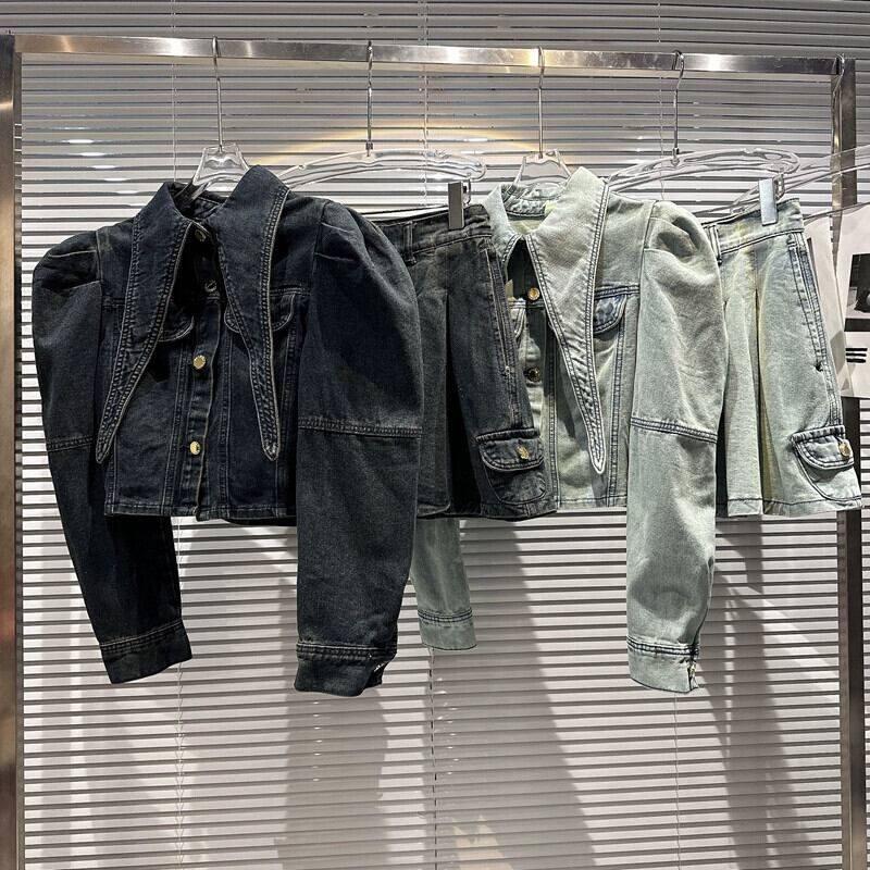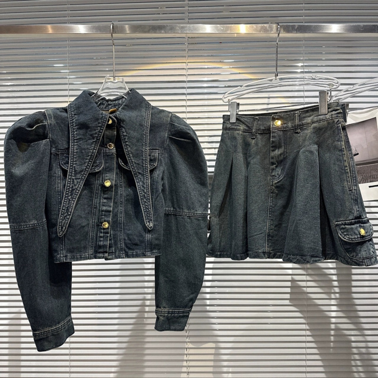 ネット有名人の同じスタイル 2024 春の新スタイルストリートウォッシュポイントカラーパフスリーブデニムジャケット + ショートスカートスーツの女性 スプリング 春物 gyan3367876216398 | vestitialla