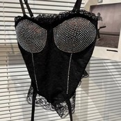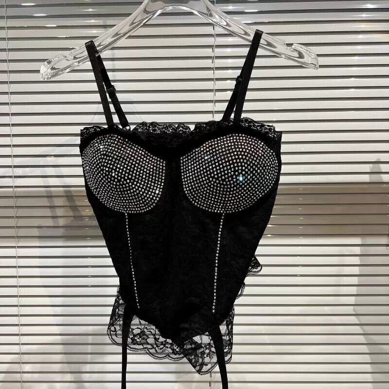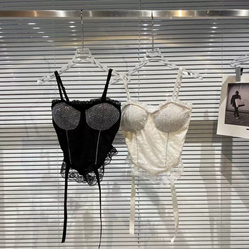 大きな目を持つインターネット有名人の同じモデル、大きな店の気質、ラインストーンダイヤモンド胸パッド、レーストリムスリムフィットキャミソール gyan3395362640123 | vestitialla