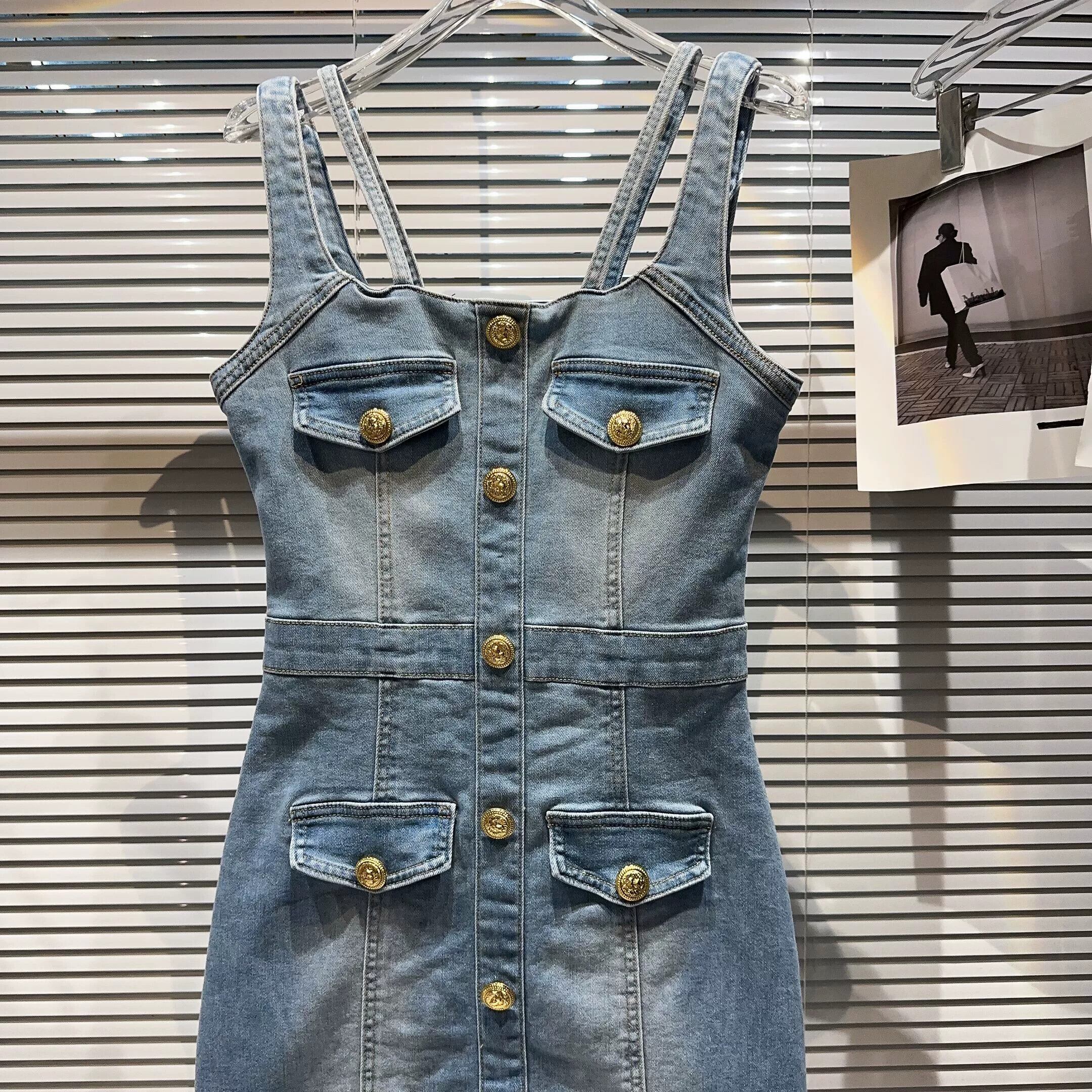 インターネット有名人同じスタイル 2024 夏の新スタイル小さな香りのよいスタイルレトロメタルバックルウエストデザインサスペンダーデニムドレス女性 サマー 夏物 gyan335935545136 | vestitialla
