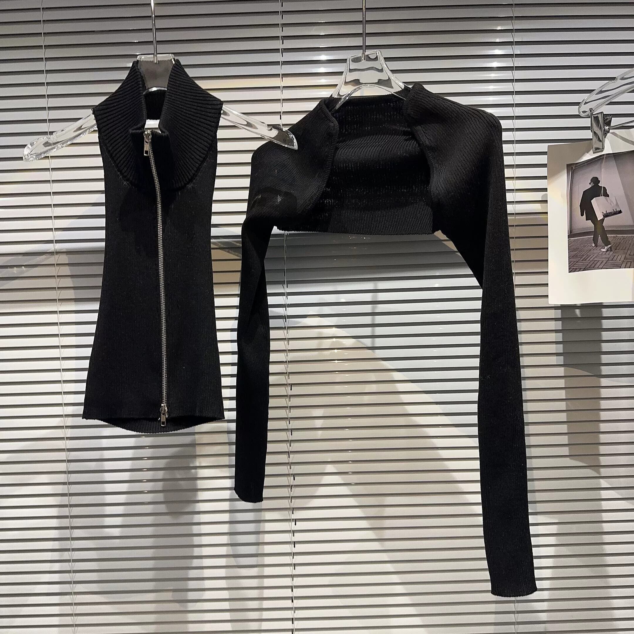 インターネット有名人の同じスタイルの2024春の新作ダークショール、背中の開いたベスト付き、スリムフィットツーピースニットセーター スプリング 春物 gyan3318822288672 | vestitialla