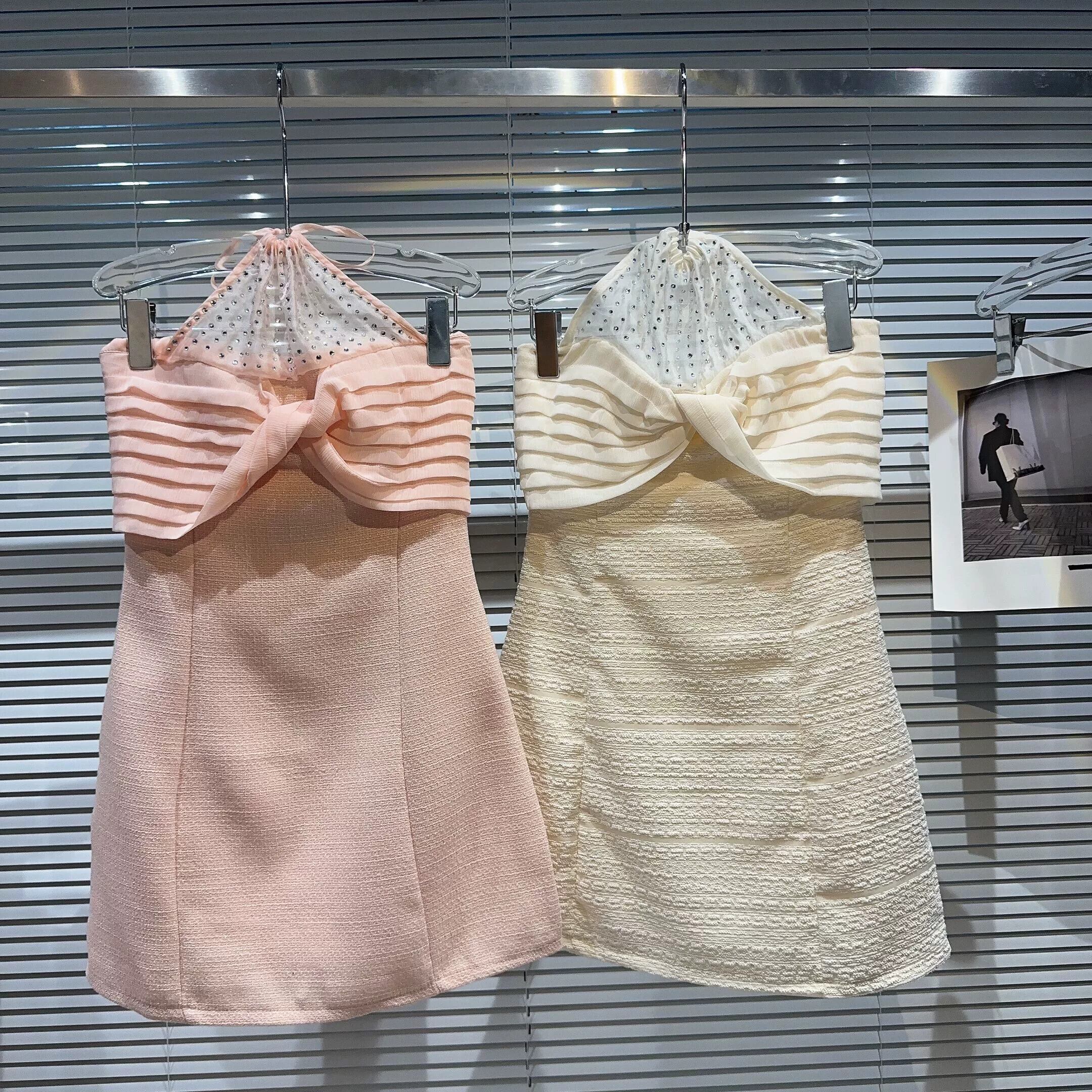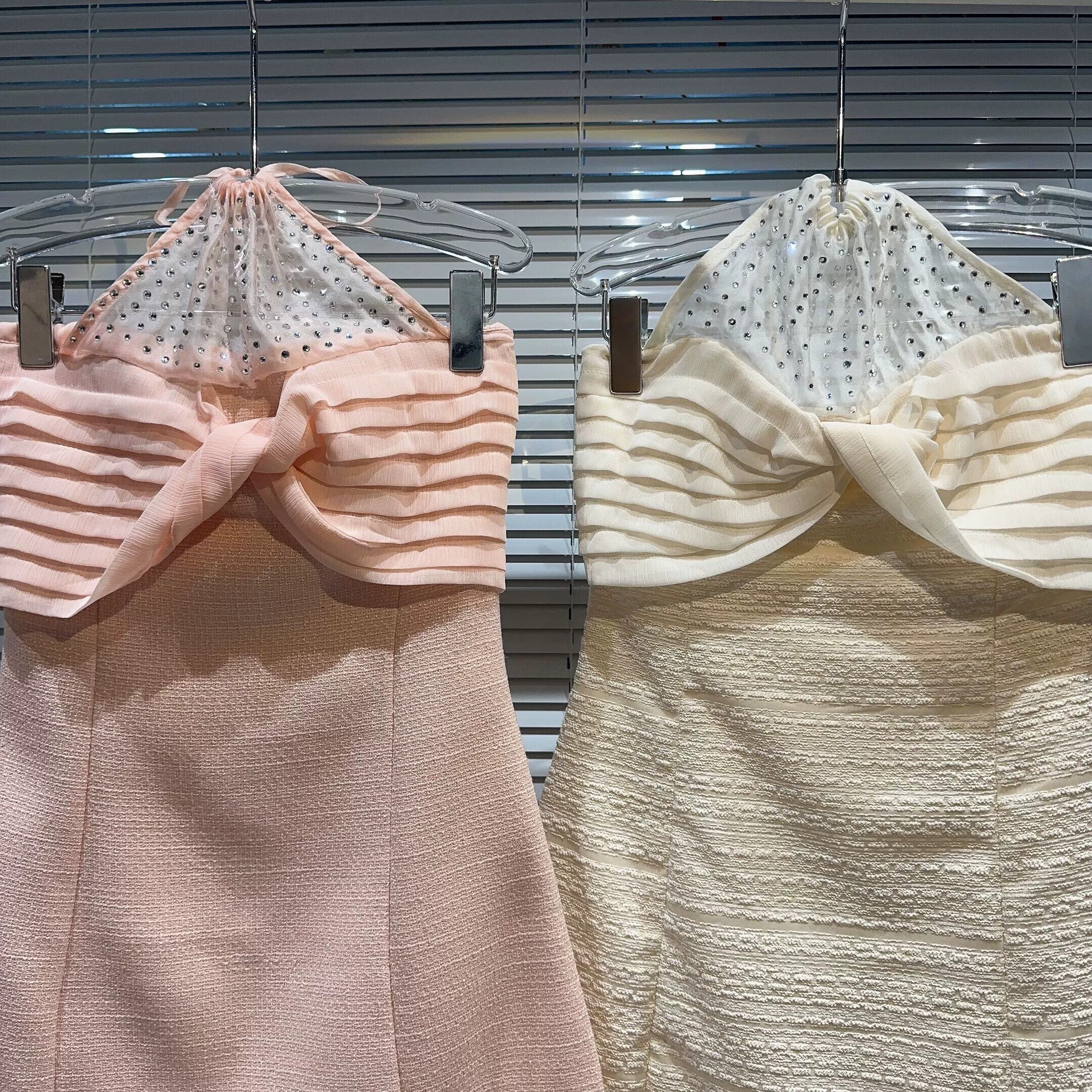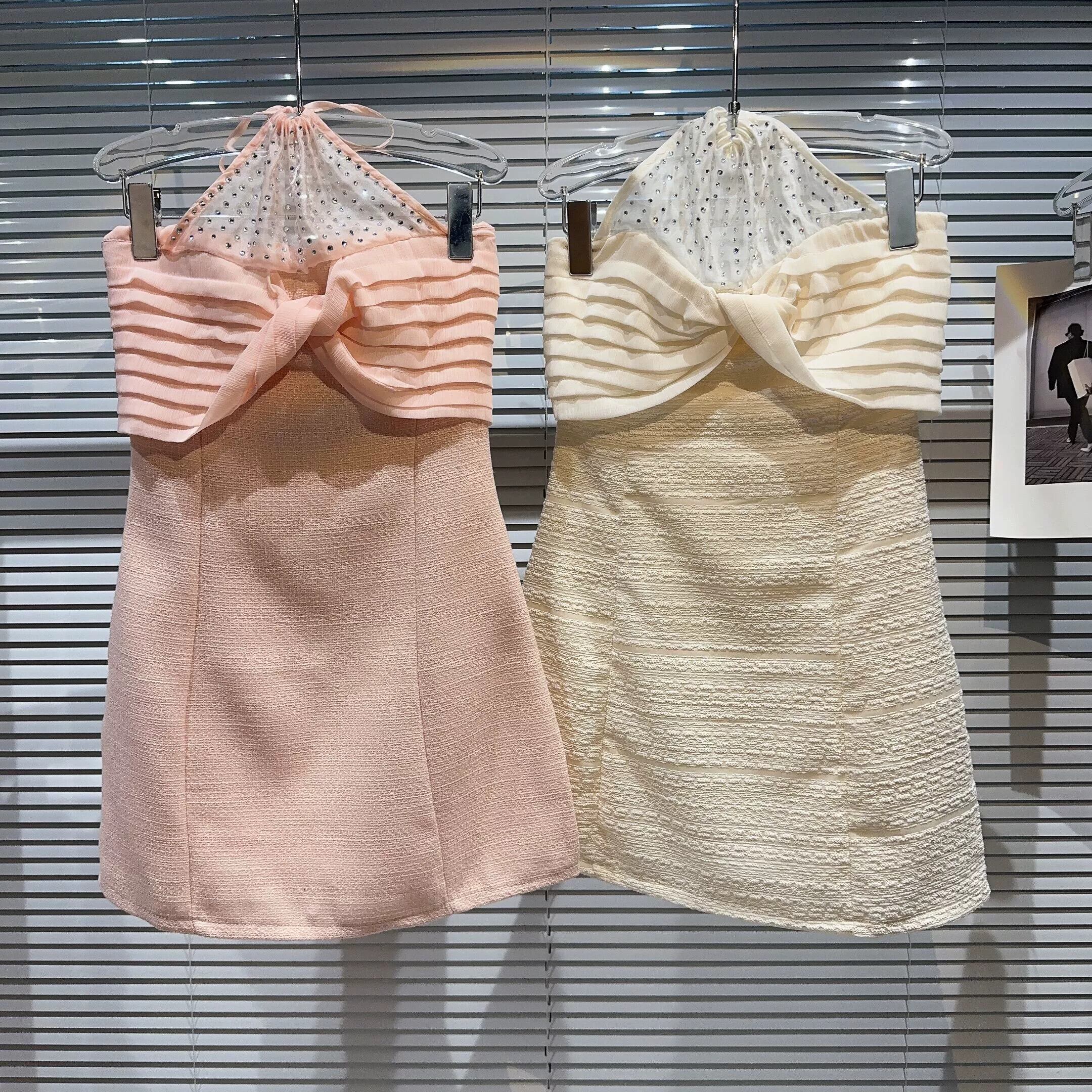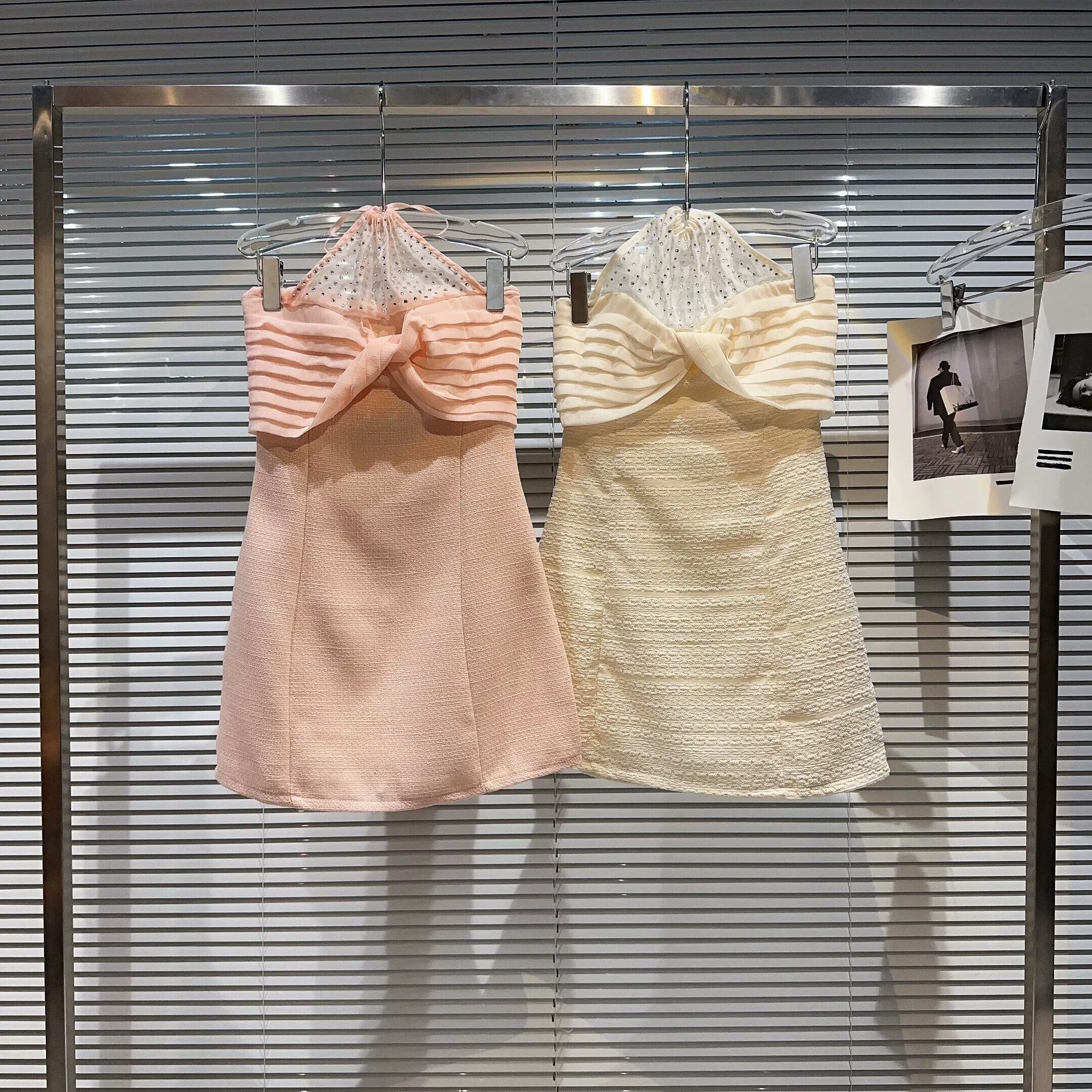 インターネットセレブと同じスタイル 2024 夏の新スタイル小さな香りメッシュラインストーンホルターネックツイードエレガントなレディドレス女性 サマー 夏物 gyan3338009112222 | vestitialla