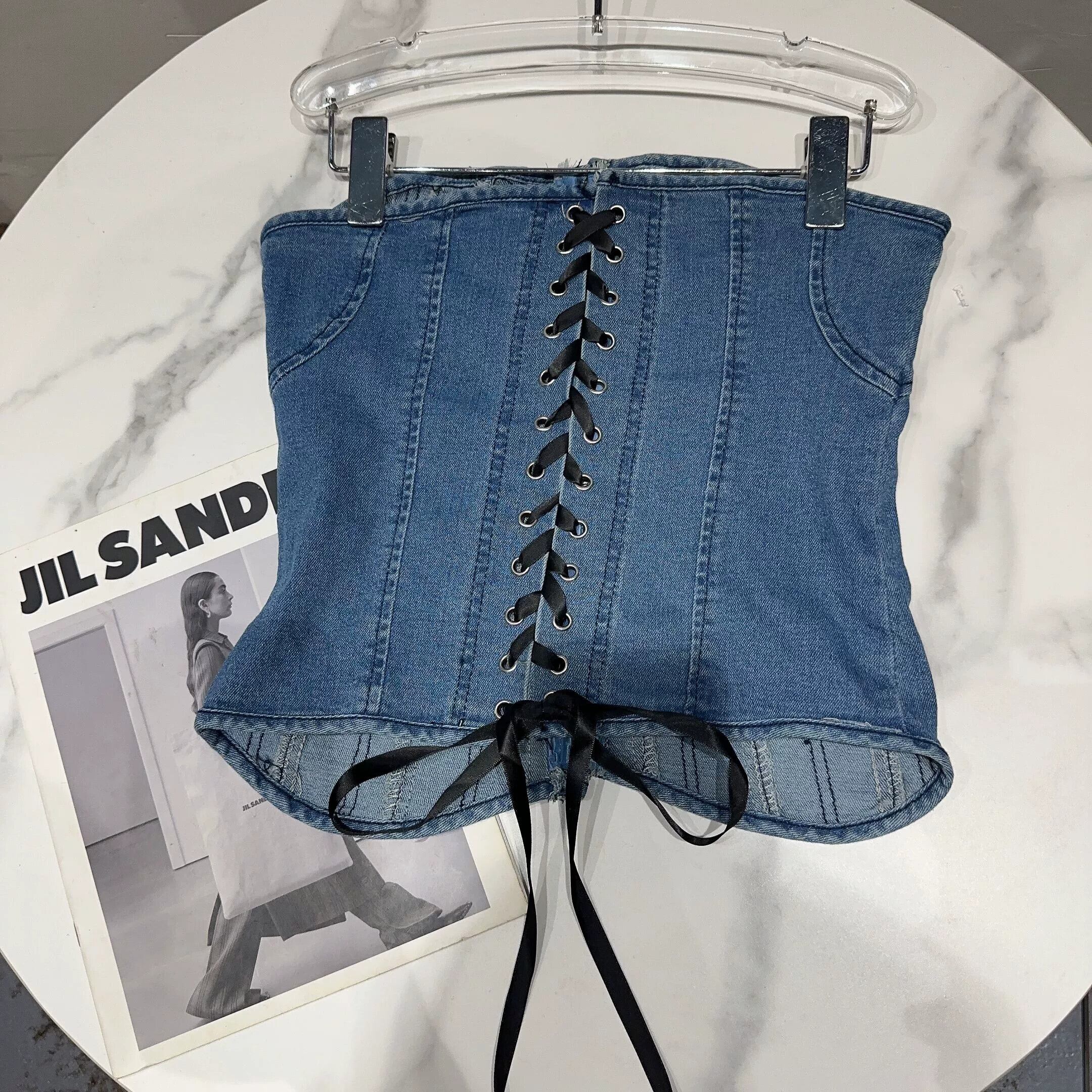 インターネットセレブと同じスタイル 2024 春の新しいニッチスタイル巾着ストラップフィッシュボーンウエストデニムチューブトップベスト女性 スプリング 春物 gyan331115526408 | vestitialla