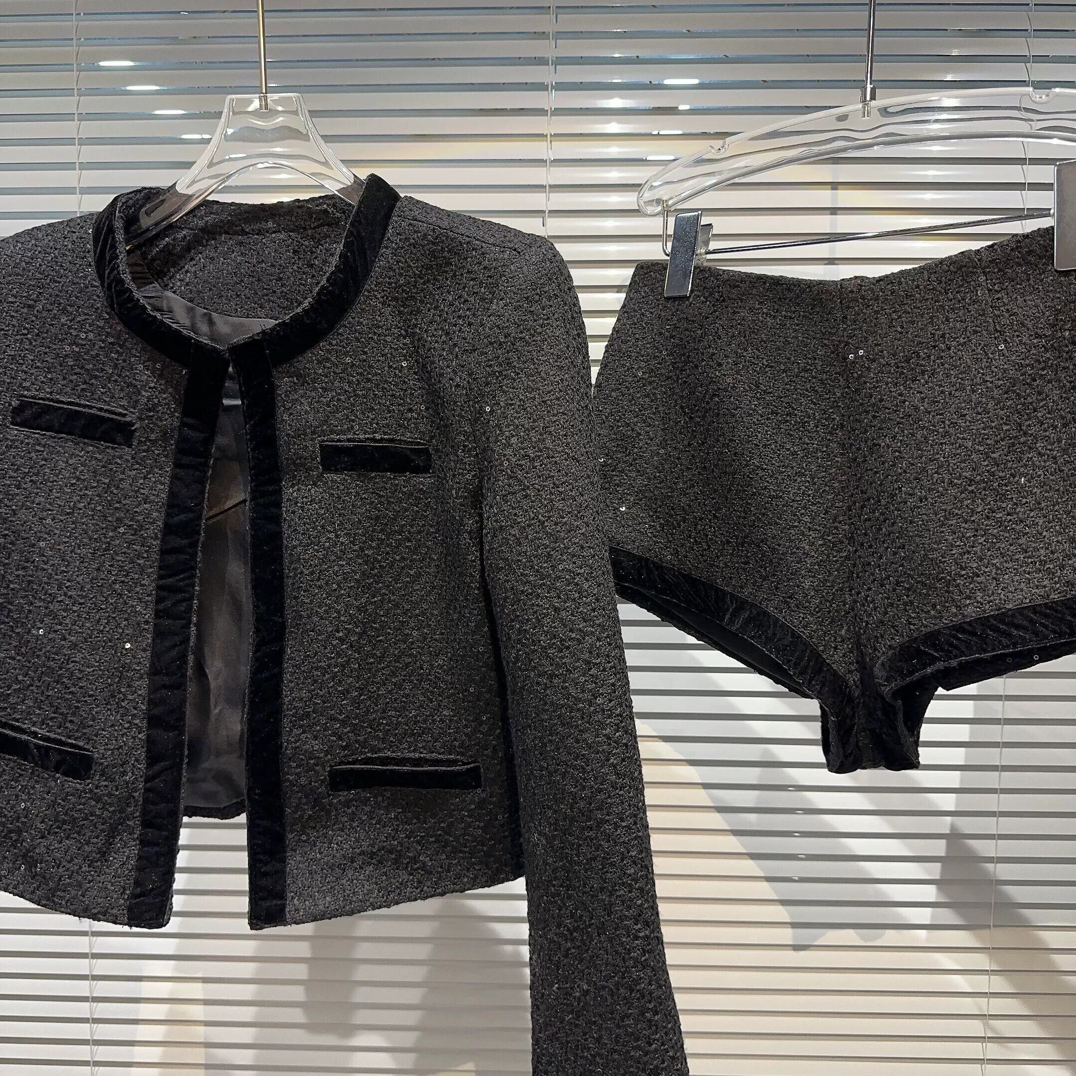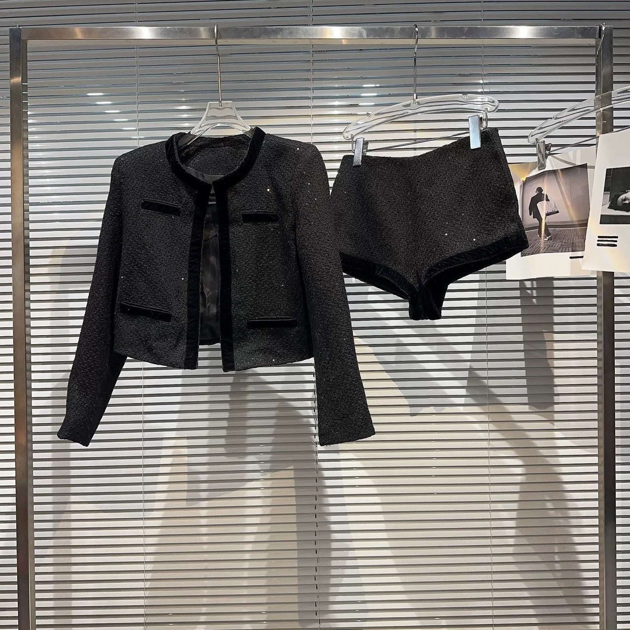 インターネット有名人の同じスタイル 2024 春の新スタイル Xiaoxiangfeng ベルベットパッチワークショートジャケット + ツイードショーツスーツ女性 スプリング 春物 ブルマー gyan3340575190010 | vestitialla