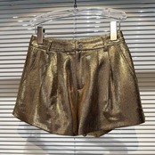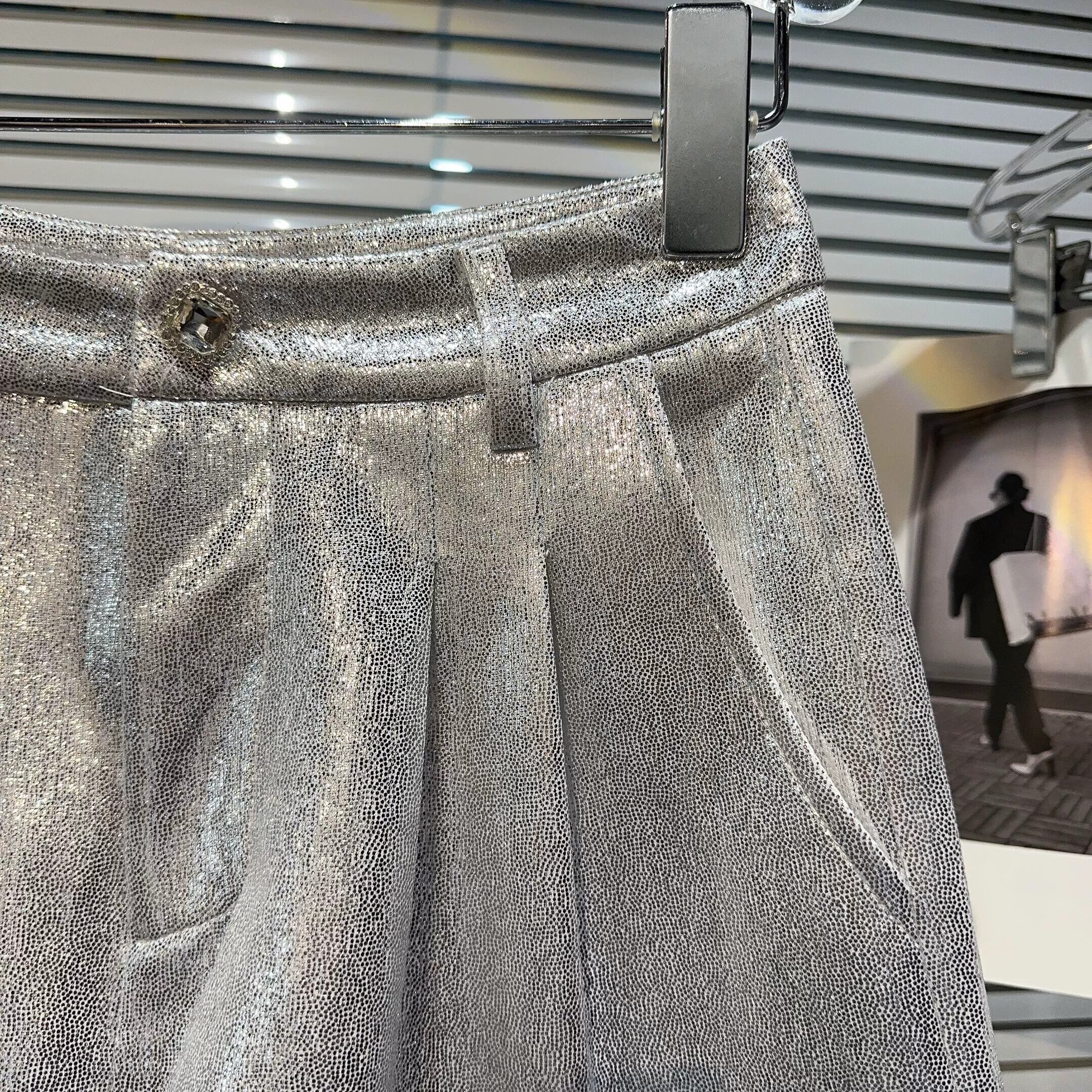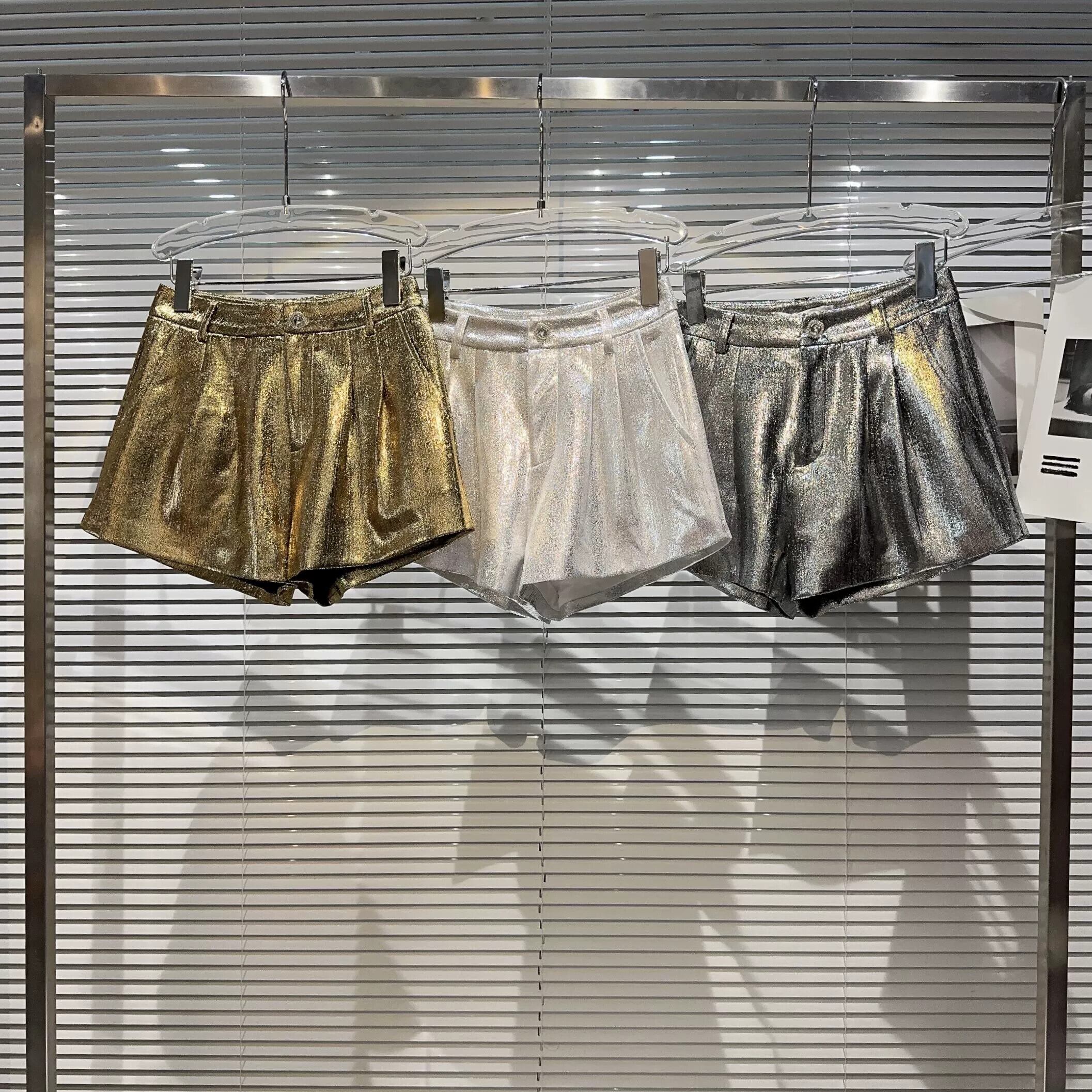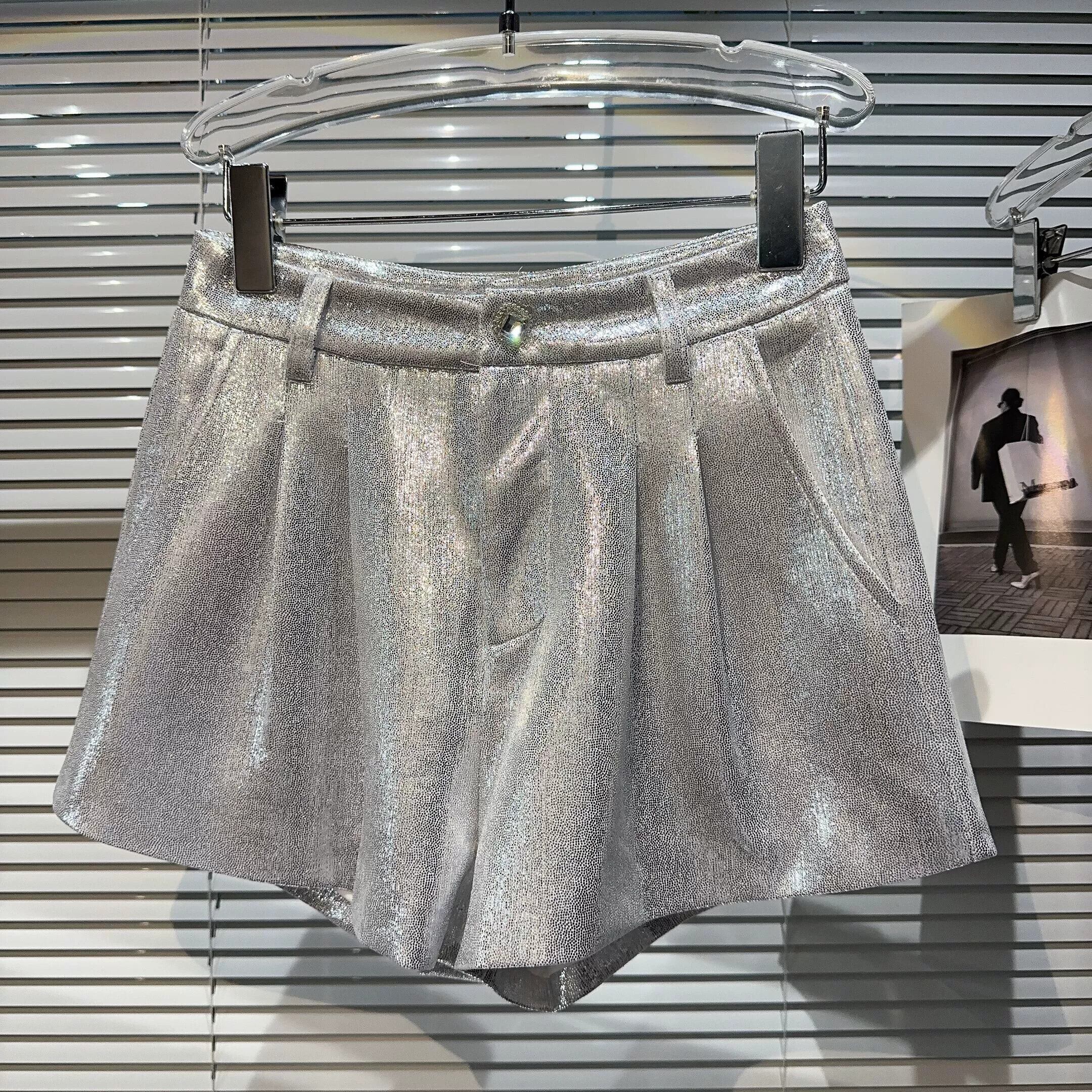 インターネットセレブと同じスタイル 2024 初春の新しいナイトクラブセレブ液体金属光沢のあるデザインのストレート 3/4 ショーツ スプリング 春物 ブルマー gyan3391874899667 | vestitialla