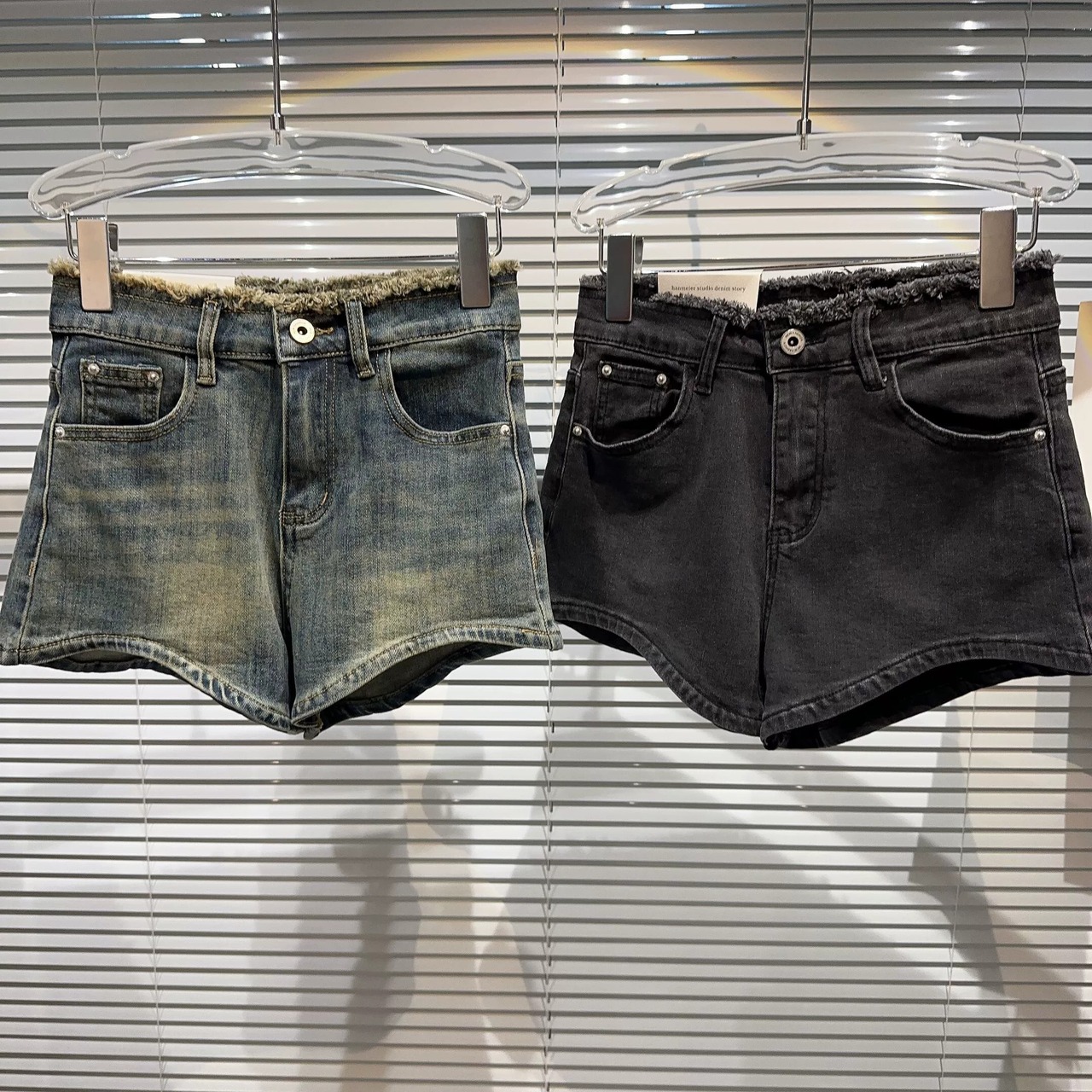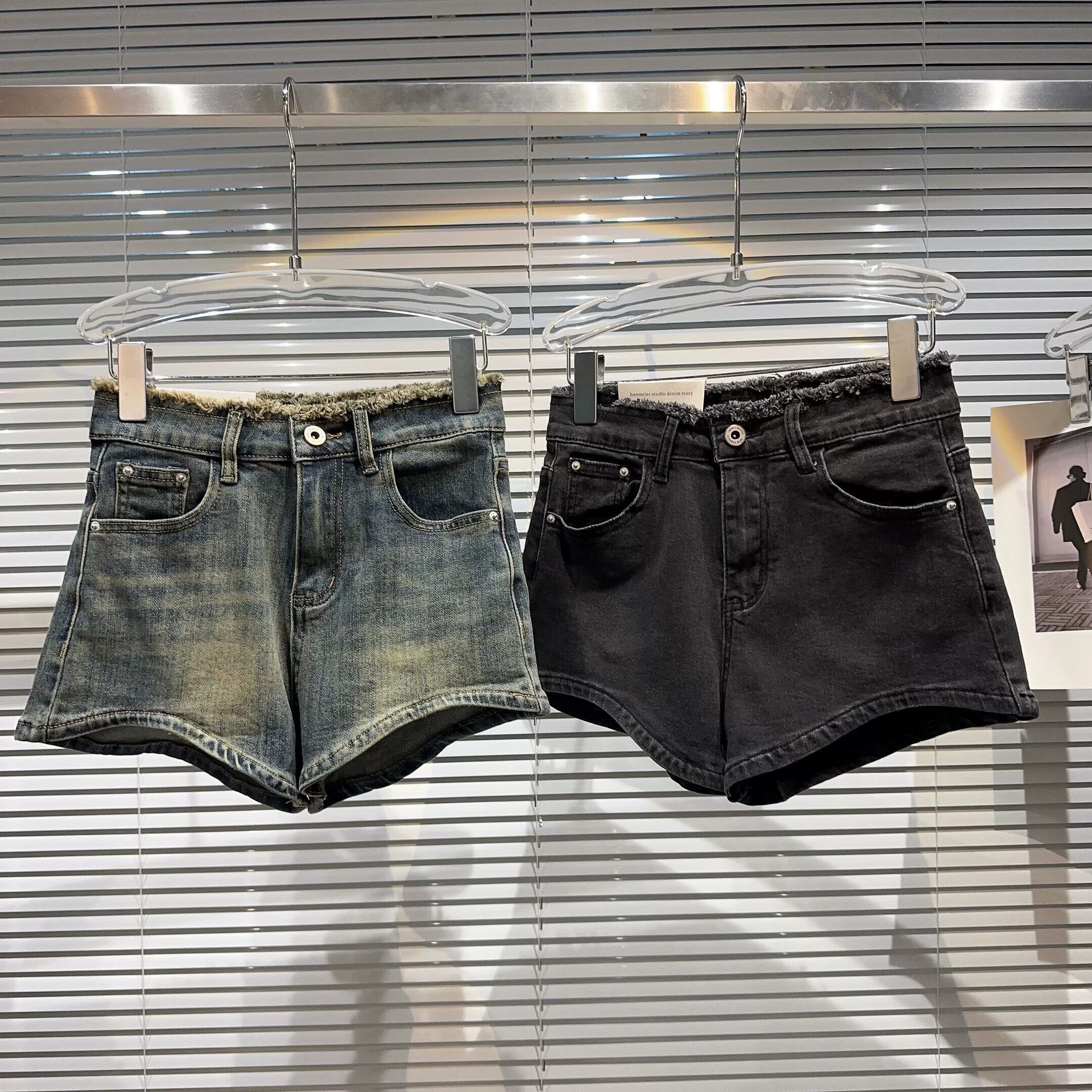 インターネットセレブと同じスタイル 2024 春の新アメリカンスタイルレトロローエッジウエストアークエッジスリムデニムショートパンツ女性 スプリング 春物 ショーツ ブルマー gyan3357352432260 | vestitialla