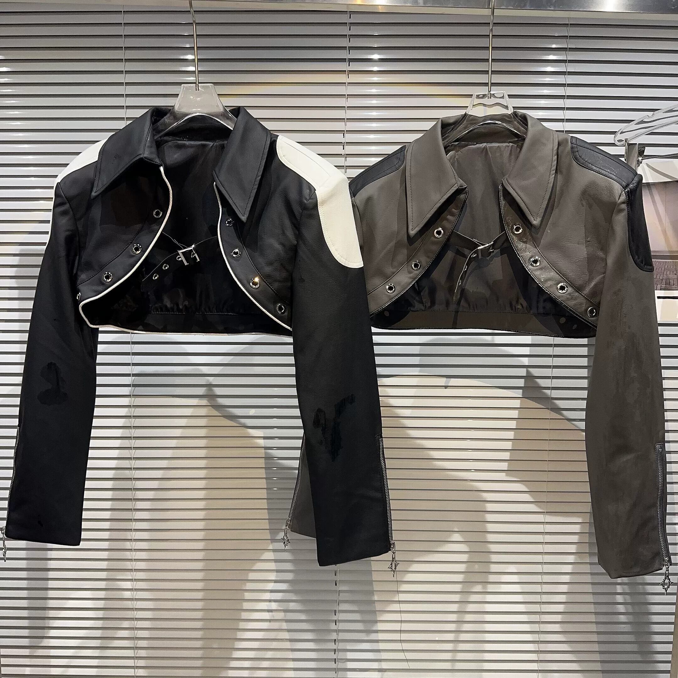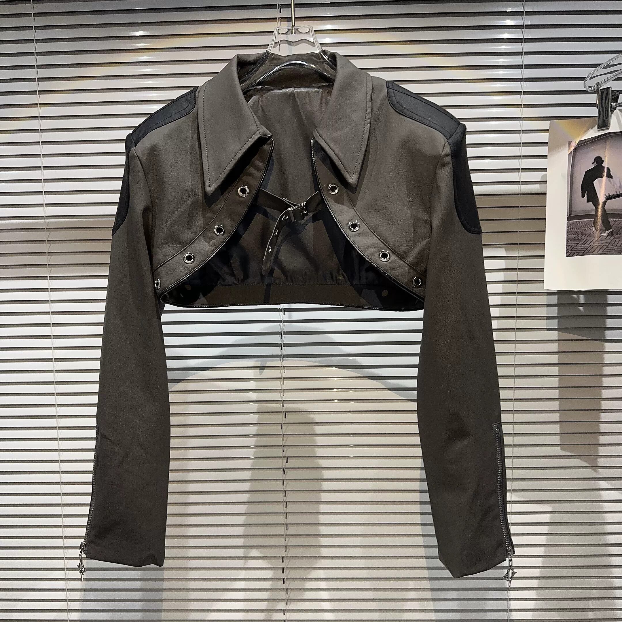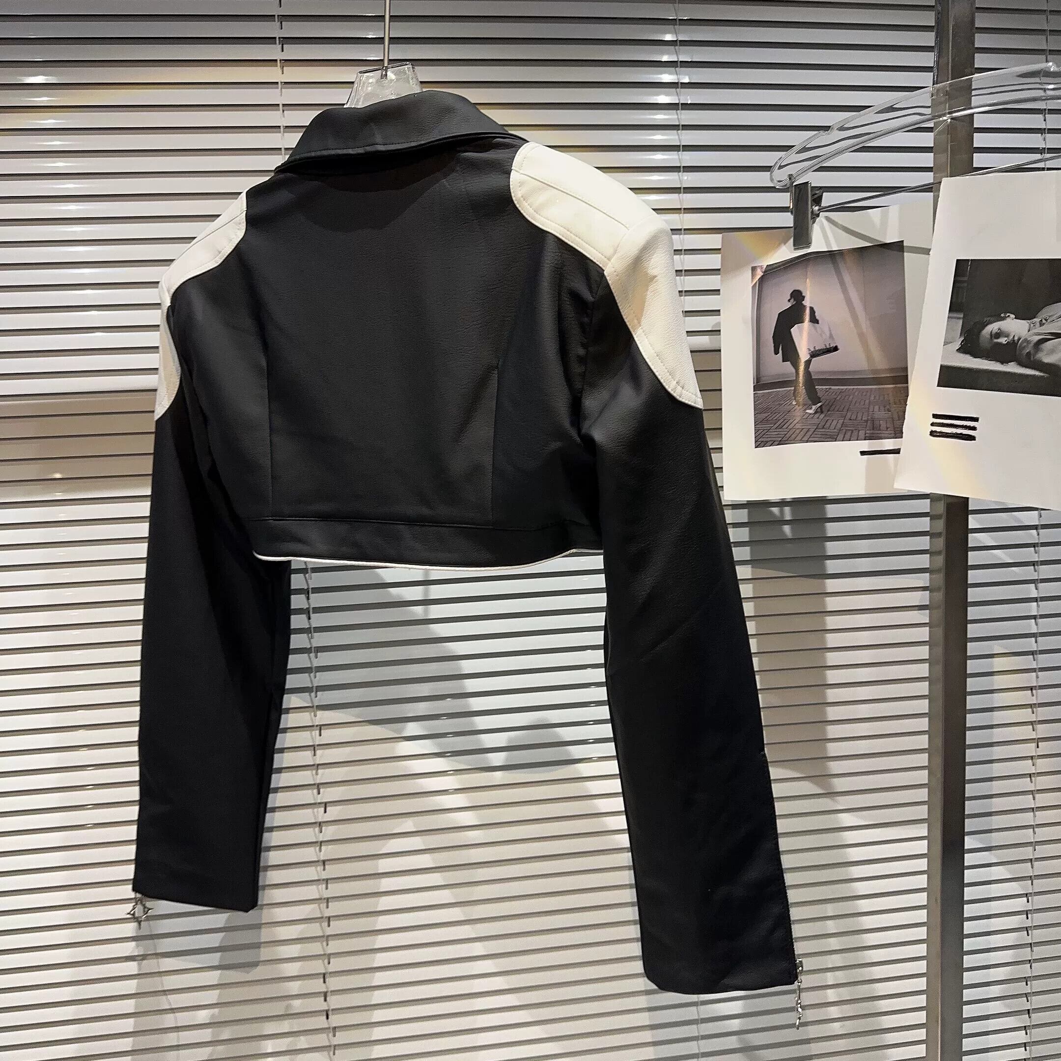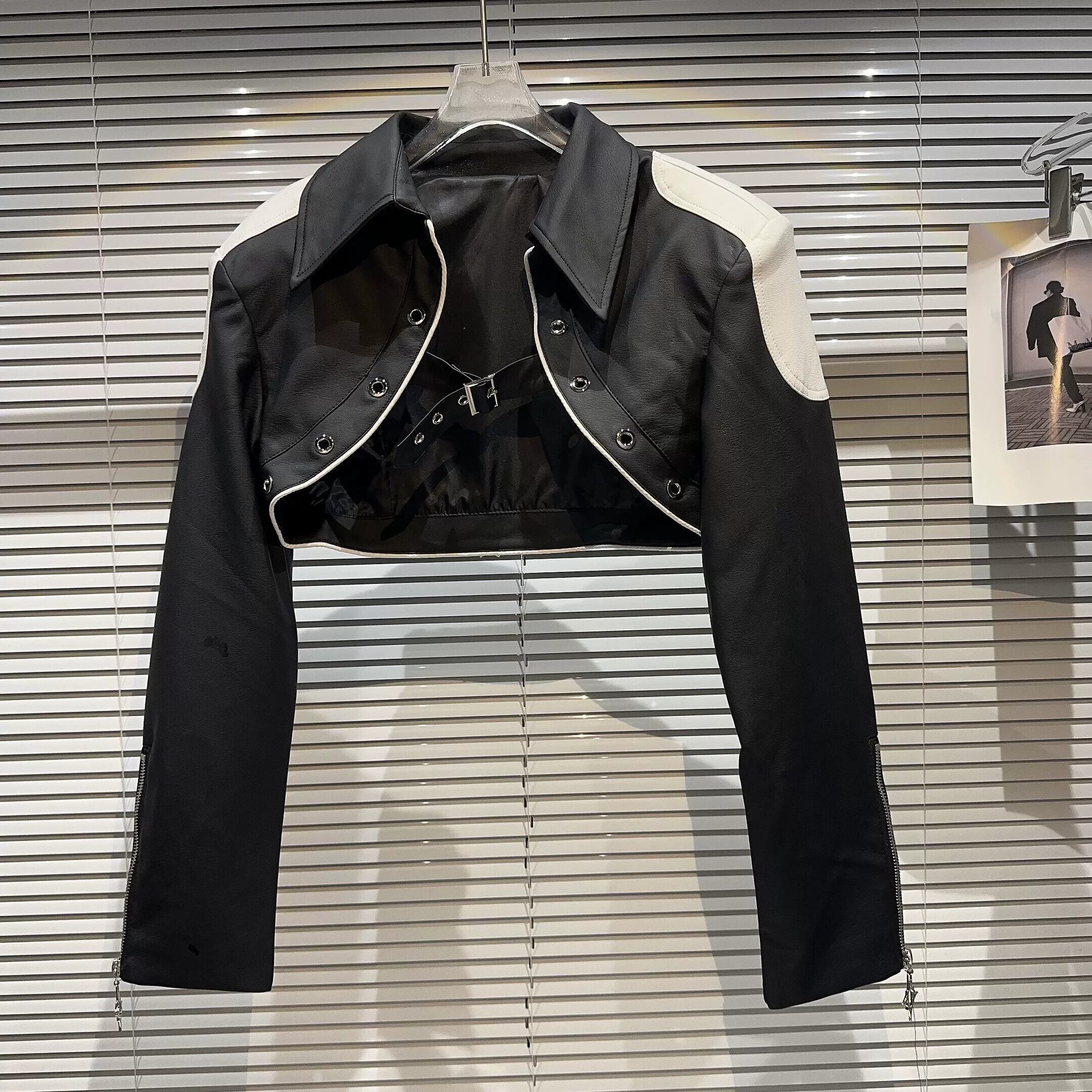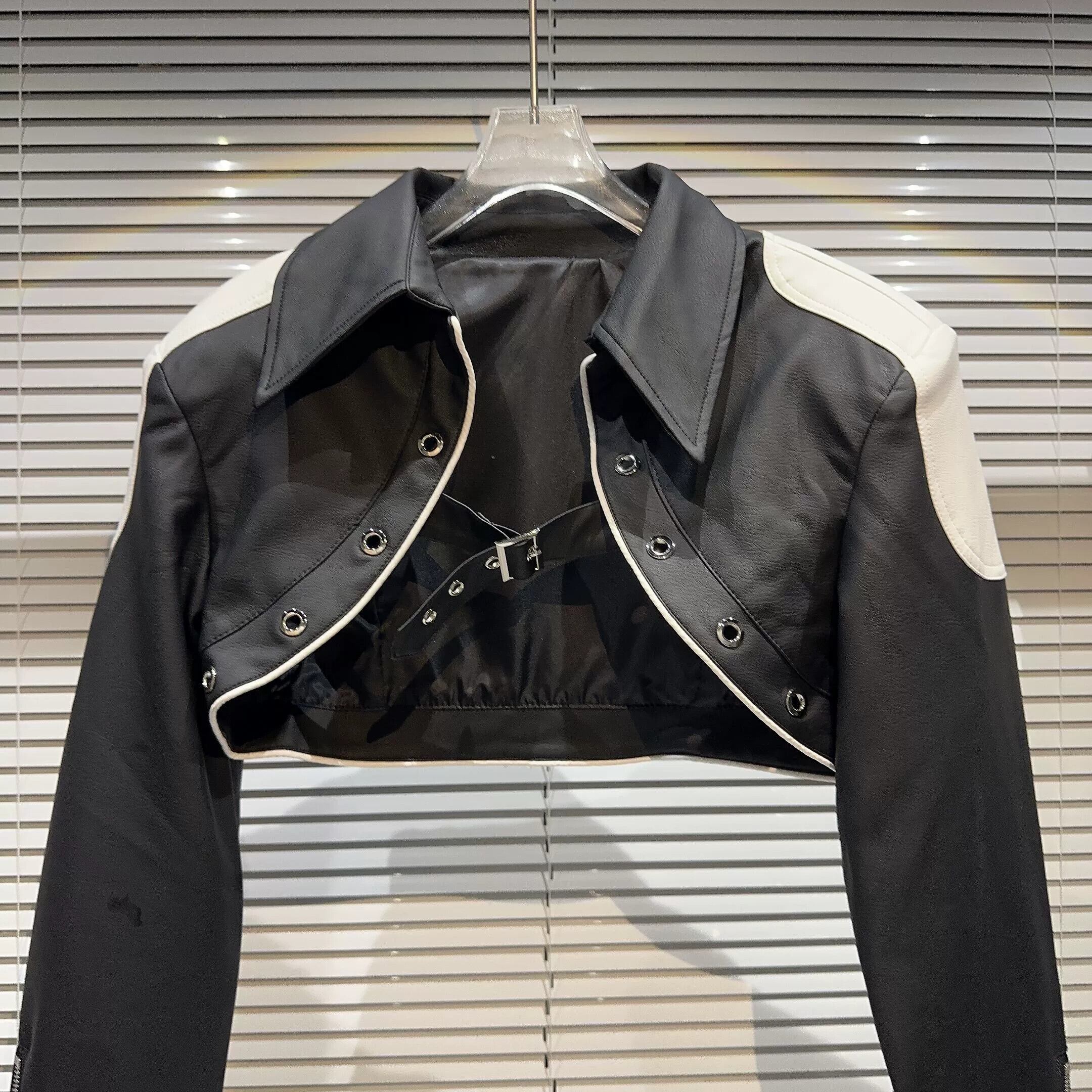 ネット有名人の同スタイル2024春新作バックルコントラストカラーショルダーパッドショートPUレザージャケットジャケット スプリング 春物 gyan3370998551366 | vestitialla